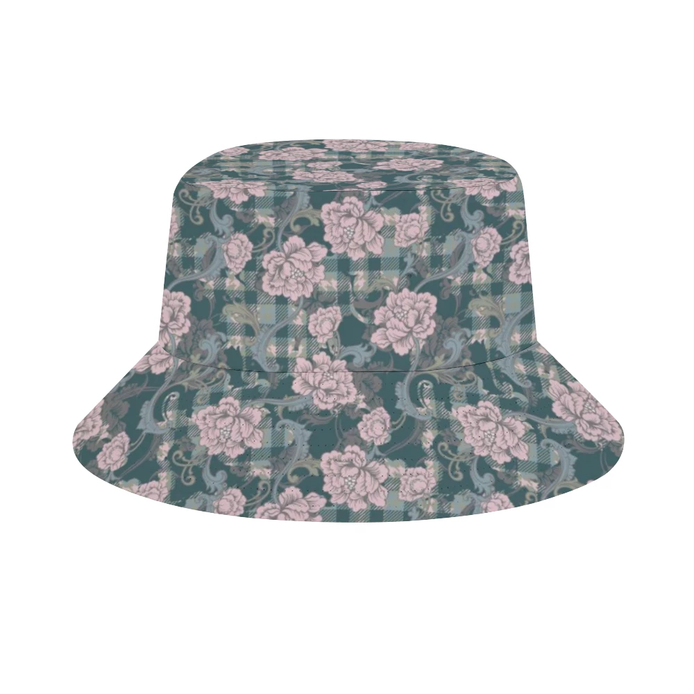 Add some style to your summer outfit with our Baroque Floral Plaid Bucket Hat.