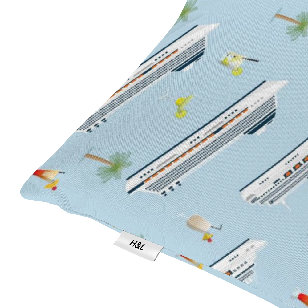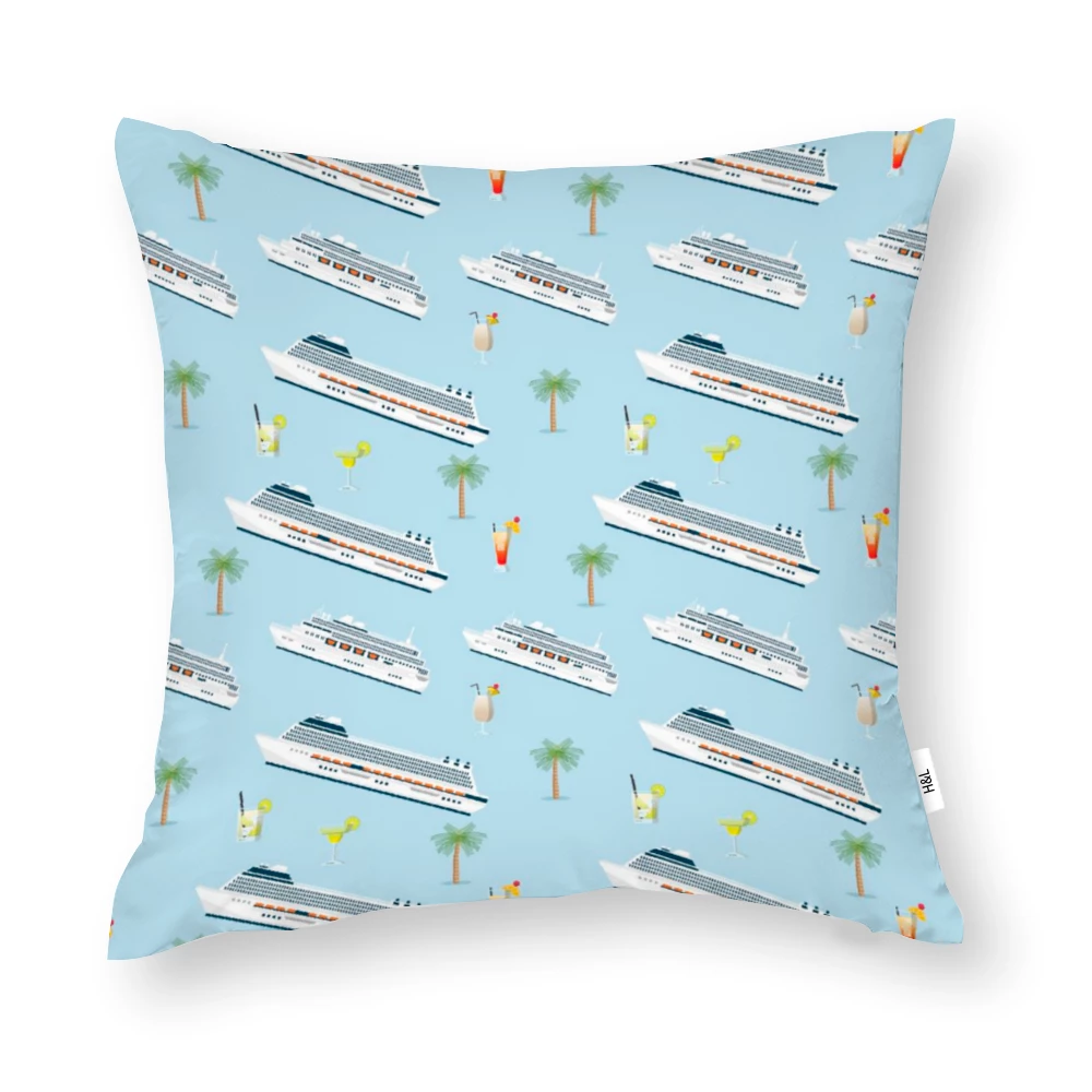 Cruise addicts won’t feel too far from the sea with our Cruise Lover’s cushion by their side. Cute diagonal cruise ships, cocktails and tropical palms will remind you of memorable days at sea with friends and family.