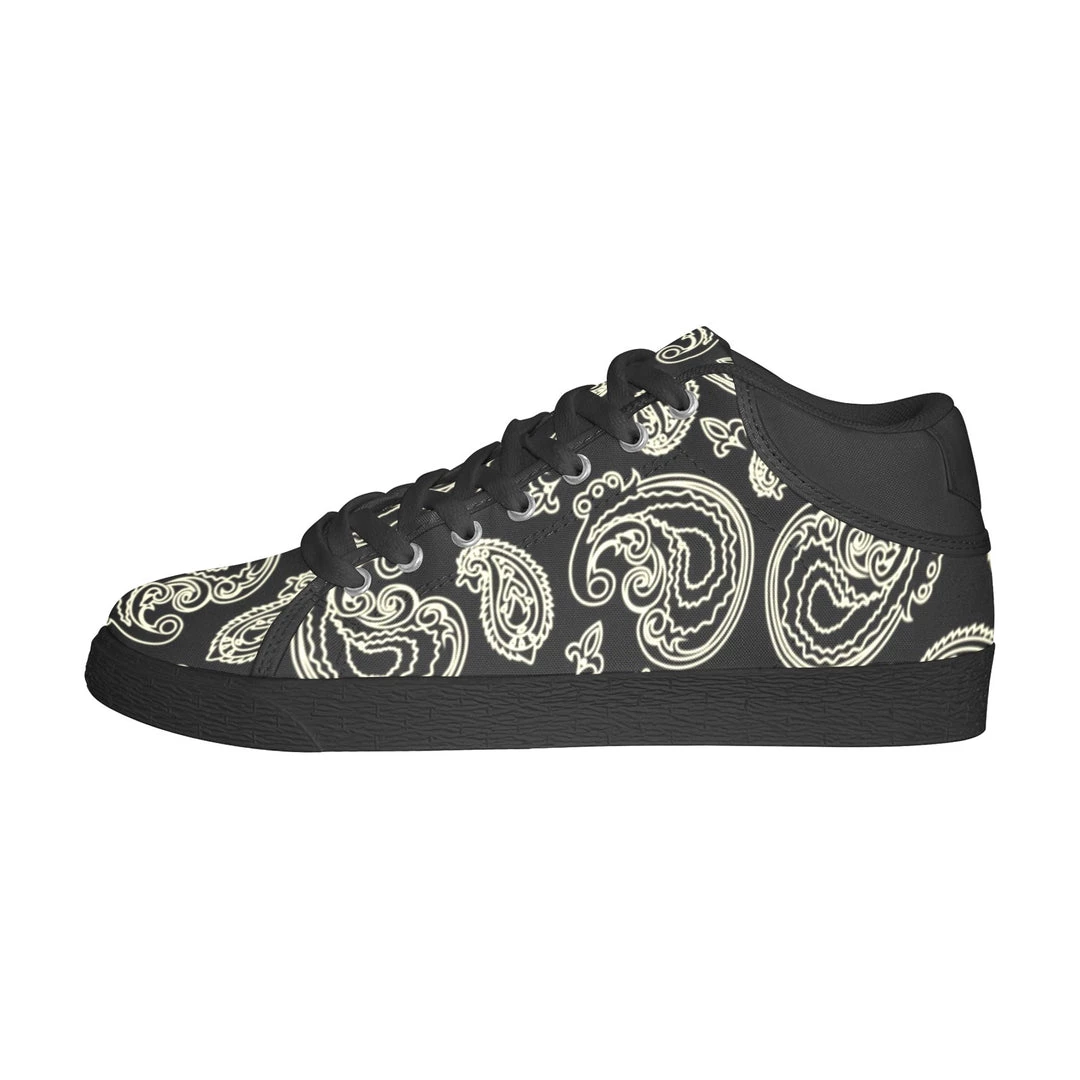 Our Black & Bone Paisley Chukka Canvas shoes feature an all over paisley print in black and bone cream.Â