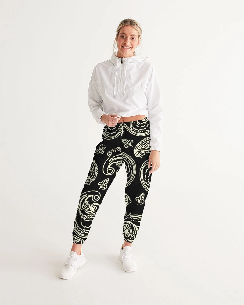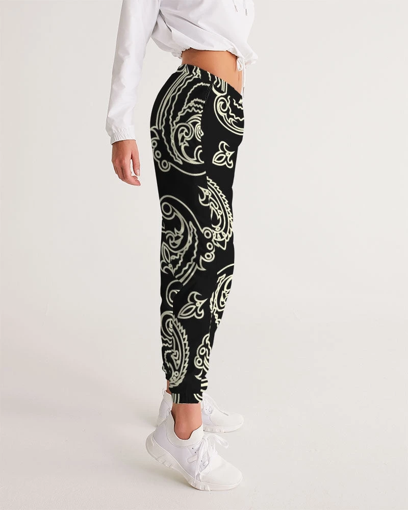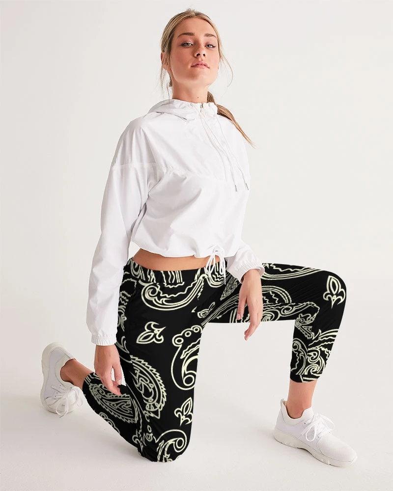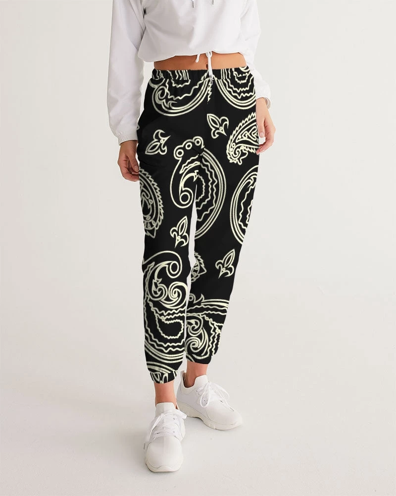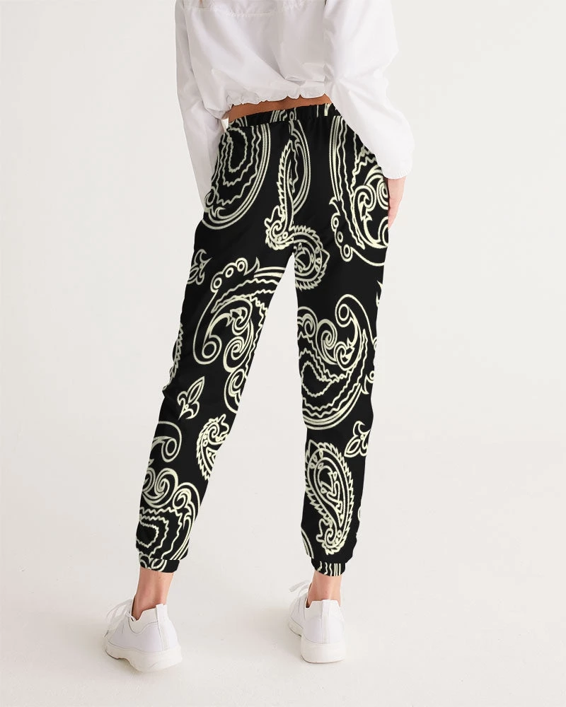 | Our Black & Bone Paisley Women’s Track Pants are both lightweight and versatile. Their water-resistant fabric keeps you dry and comfortable. The relaxed fit makes them great street-worthy style. The black large paisley pattern is contemporary and classic. Premium quality with full mesh lining.