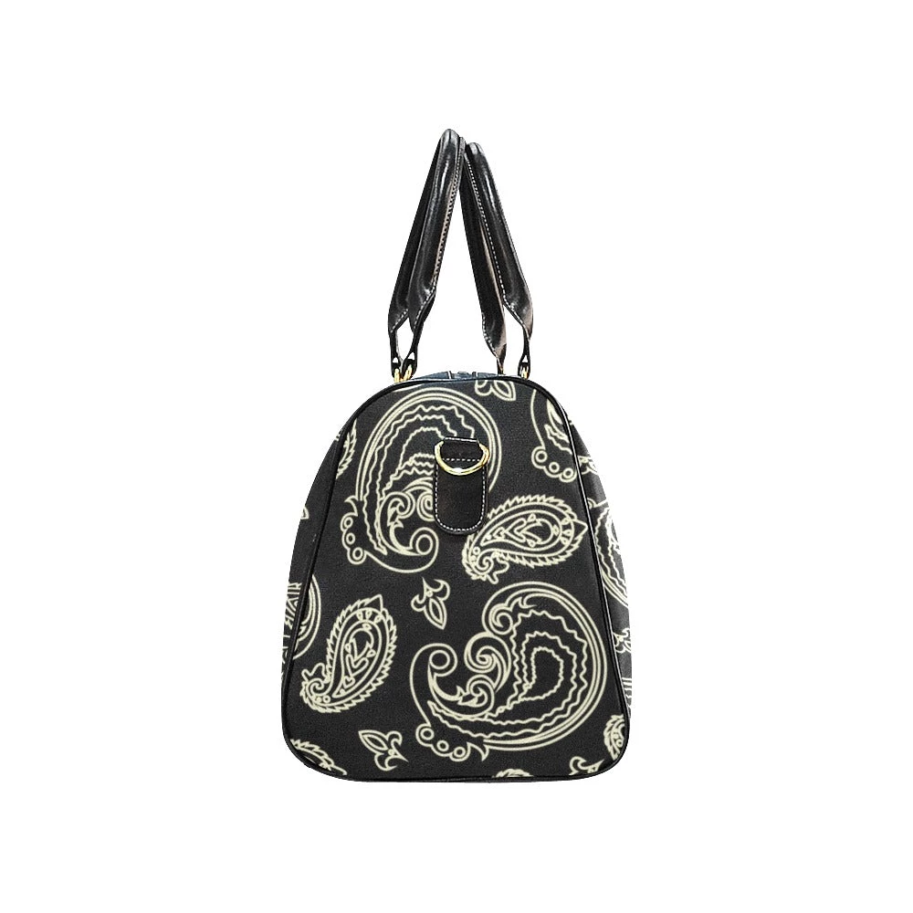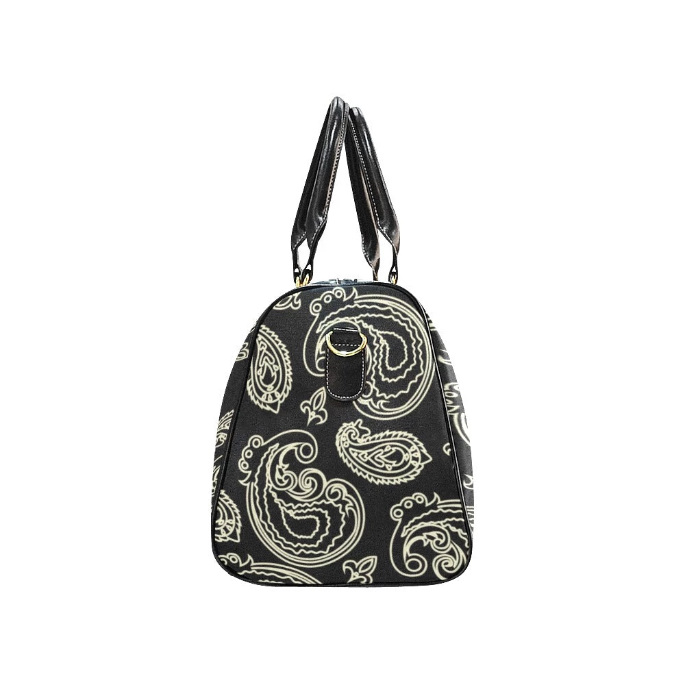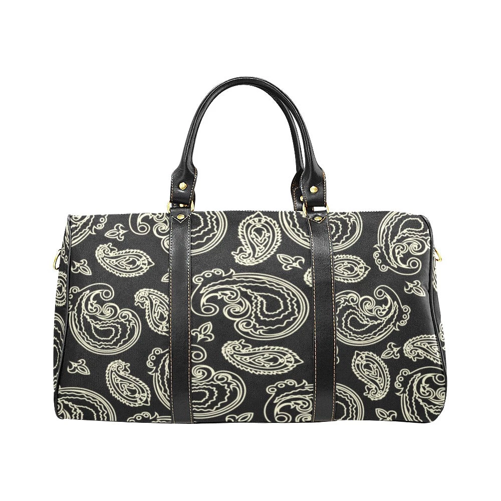 Our Black & Bone Paisley Travel Bag is something a little different. The all over simple paisley print will match well with a range of outfits to complete your look. This large travel bag is perfect for carry on luggage where you can hold your laptop, shoes, and some clothing. Use daily at school or university, or take it on a business trip – the choice is yours.