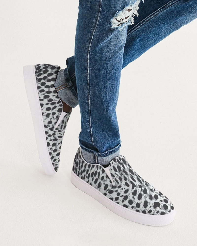 | Our Black & White Leopard Slip-On Canvas Shoe is versatile enough to be worn casually or formally. Equipped with removable soft insoles and rubber outsoles, the easy on/off can be worn with all day comfort. A beautifully crafted, super comfortable shoe with an all over leopard print.