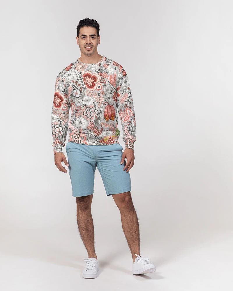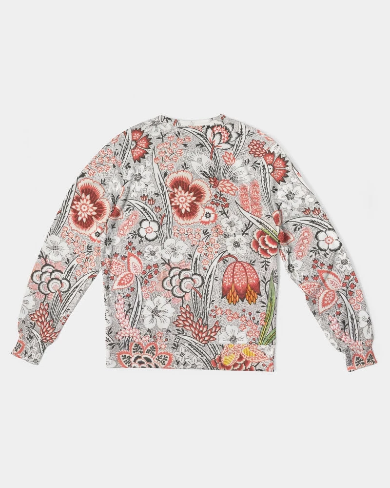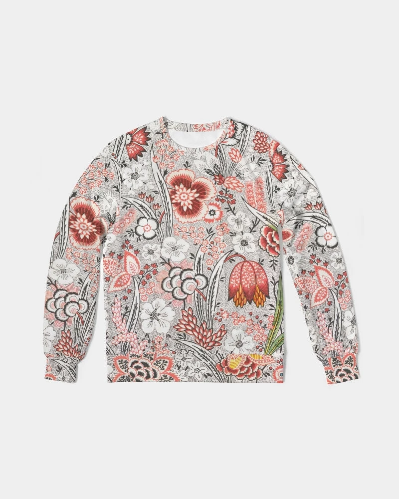 | Our Blood Orange Floral Classic French Terry Crewneck Pullover features a stunning all over vintage floral print you don’t see every day. The regular fit is not too big, but not too tight so you can layer it or wear it alone. Finished with a smooth surface on the outside and loop knitting inside for the right amount of warmth and comfort.
