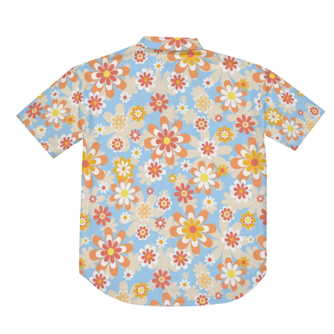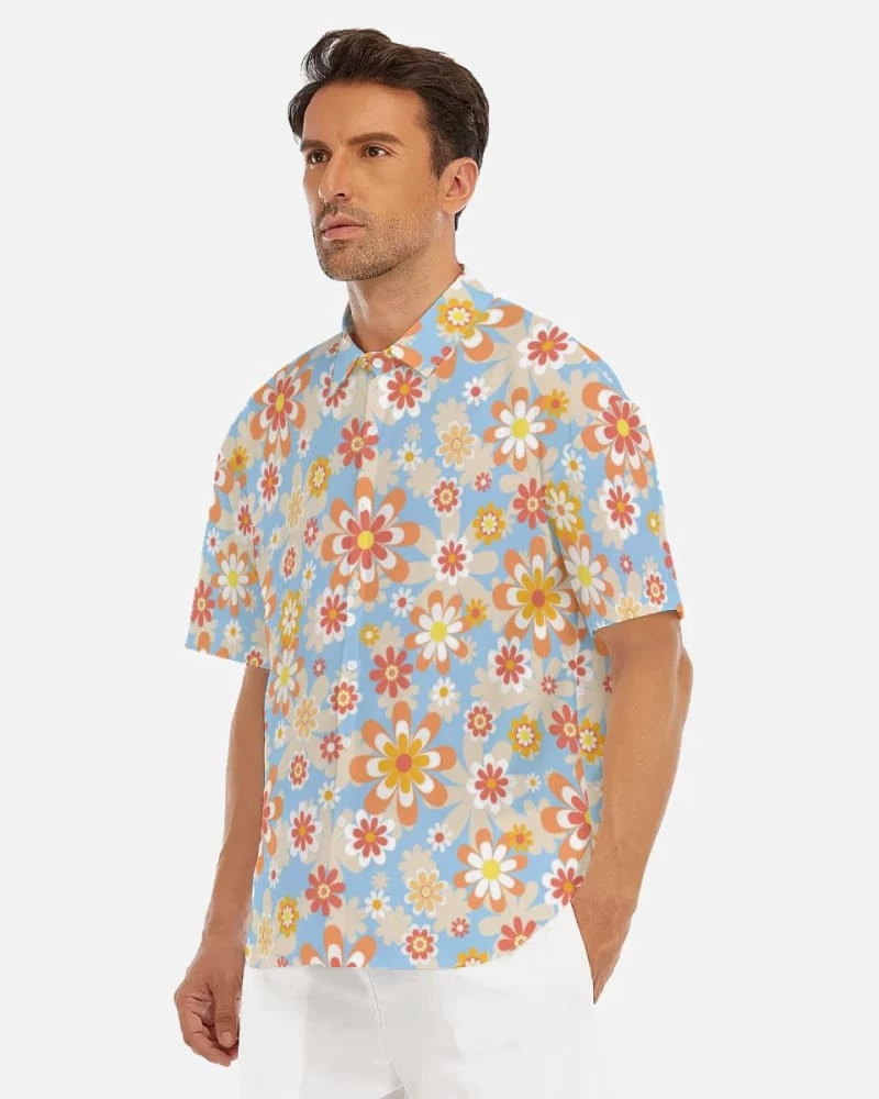 Our Blue Blooming Mod Floral Drop Shoulder Short Sleeve Shirt features a contemporary floral print over a cool blue. Perfect for warm summer evenings, or a BBQ by the beach. A versatile fit, it can be dressed up with pants, or down with shorts – the choice is yours. This stunning floral short sleeve shirt features a loose fit, curved hem, button up collar and contemporary drop shoulder design for an oversized look.