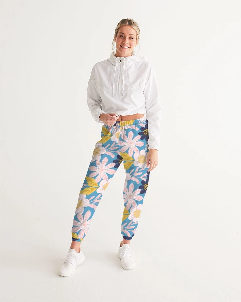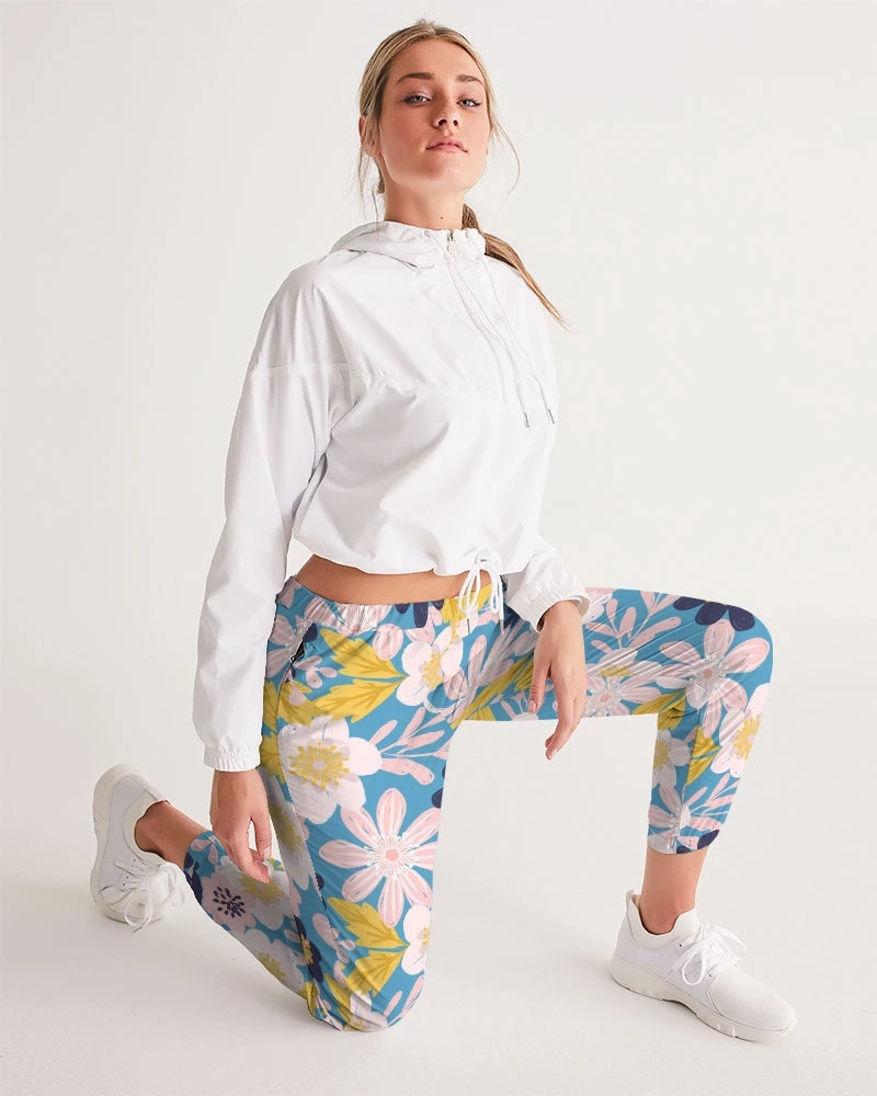 | Our Blue Frisky Floral Women’s Track Pants are both lightweight and versatile. Premium style, they are fully lined. The water-resistant fabric keeps you dry and comfortable in active situations. The relaxed fit makes them street-worthy style.