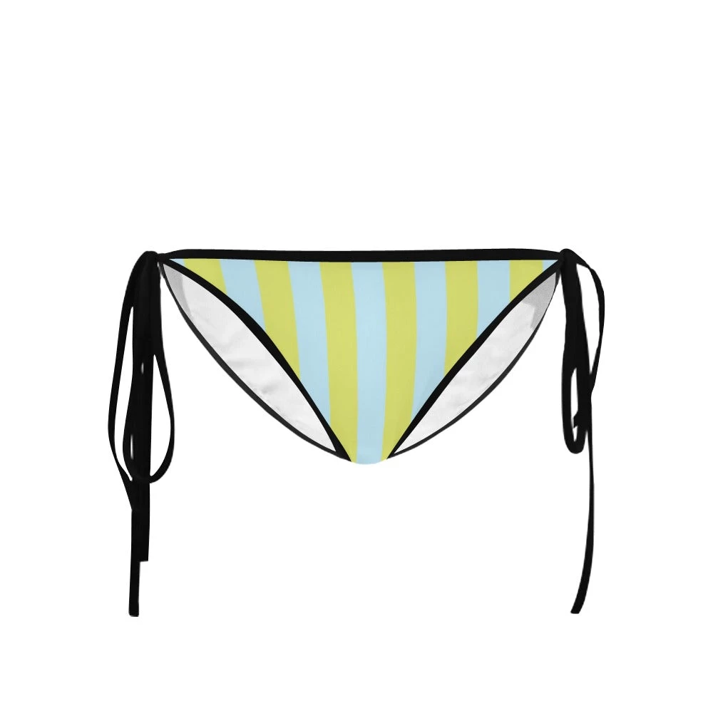 Our Blue Lime Stripes Bikini Bottoms feature a simple striped look in contemporary colors. This model comes with black tie up straps. Please refer to the size chart for the perfect fit in both EU and US sizes ranging from S through to 5XL.