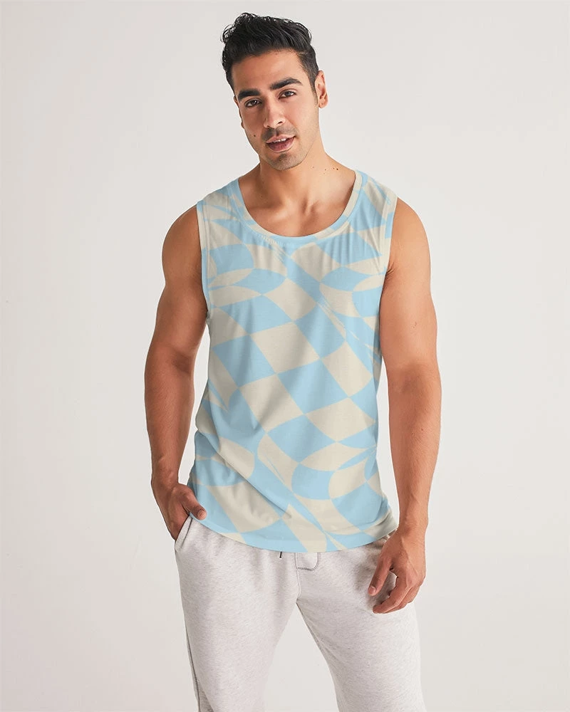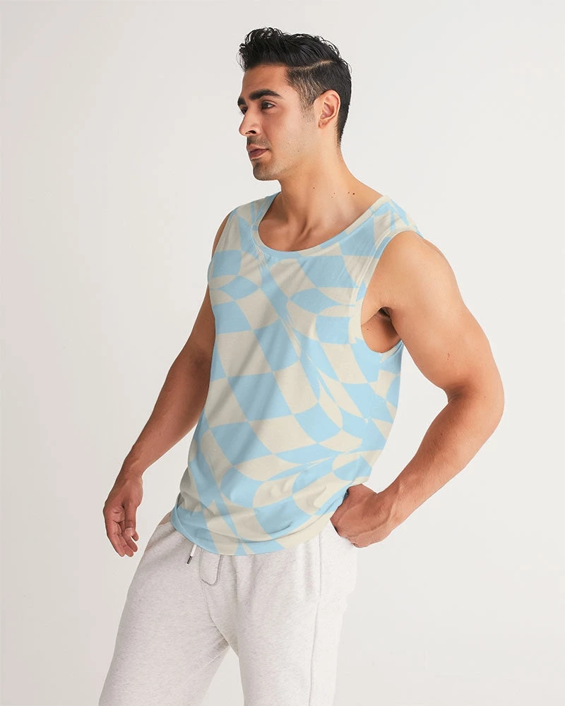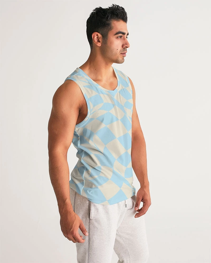 | The softest, most comfortable tank you’ll ever wear. Our Blue & Vanilla Ripple Check Sport Tank is crafted from a soft and stretchy polyblend material. It has a rib-knit trim and U-neck for a style that never fades. Wear it alone, or under a jacket for a color pop.