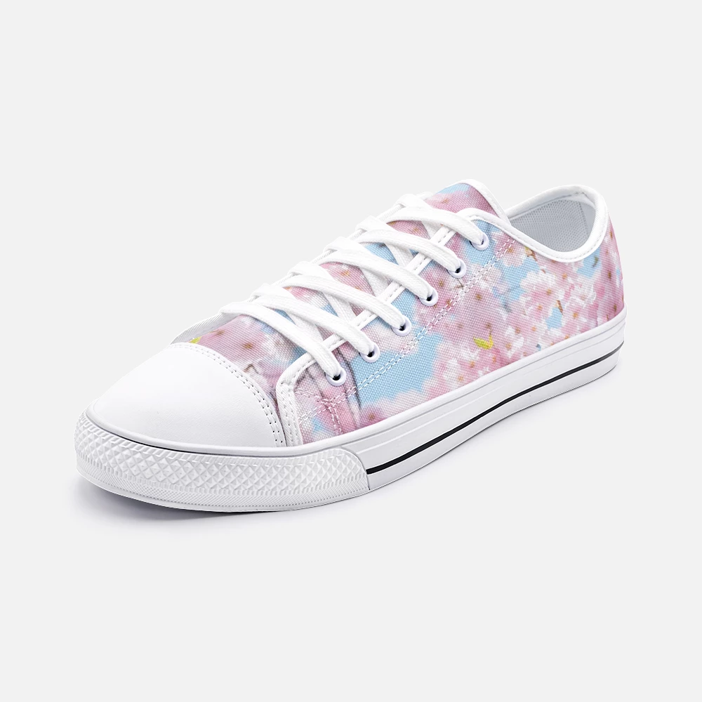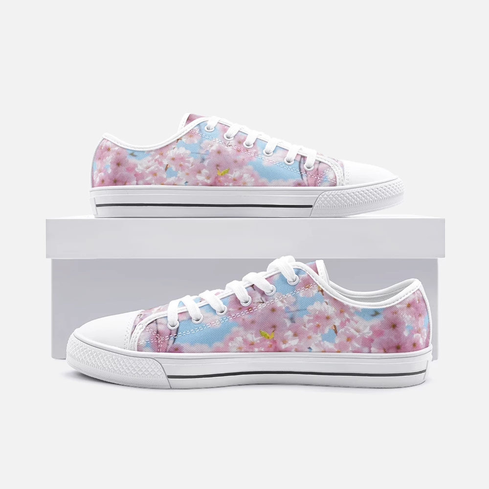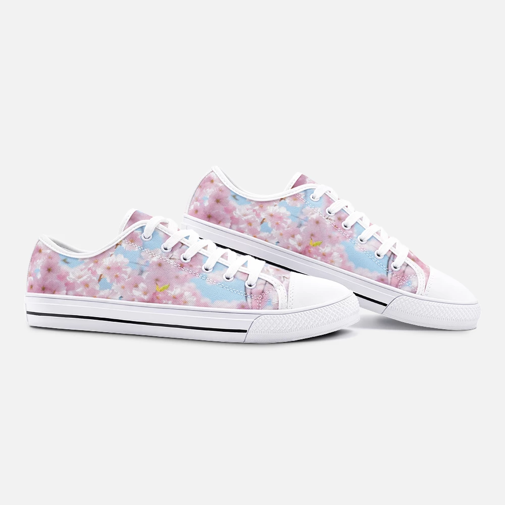 Expand your shoe collection with these stunning Cherry Blossom & Sky Blue Low Top Canvas shoes. With a rounded toe construction they feature soft textile lining, and lightweight construction for maximum comfort. The lace up closure ensures a snug fit with metal eyelet for a classic look. The high quality outsole provides traction and exceptional durability.