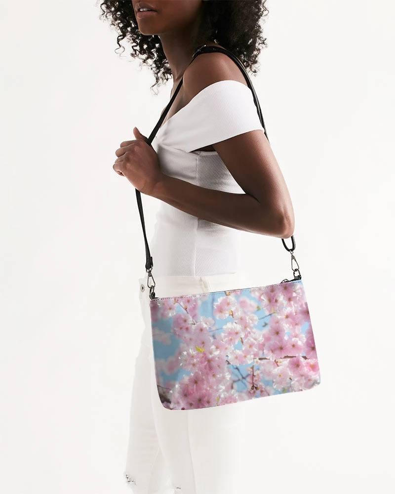 | The Cherry Blossom Daily Zip Pouch features an all over floral print. With ample room inside and interior zip pockets you’ll be well equipped for the day. The removable wrist and shoulder straps allow you to pair this gem with any outfit. Features premium gunmetal hardware, vegan leather and polyester lining.