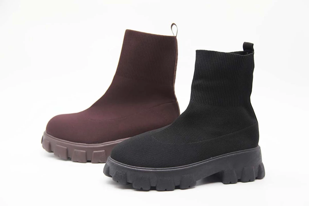 These cute, lightweight knitted sock boots are a must have this fall / winter. The chunky sole is a contemporary look. Lightweight and comfortable, they’re great for a night out or a day at the mall.