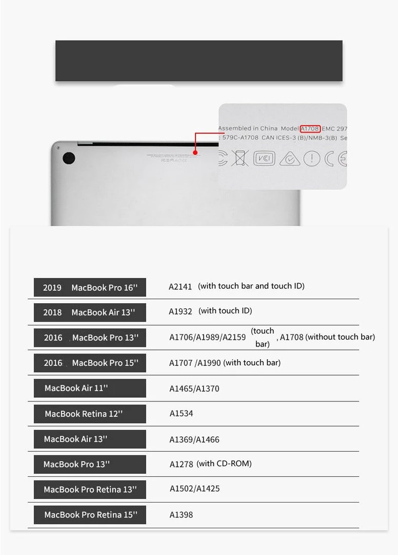 PLEASE CHECK THE MODEL NO. AT THE BACK OF YOUR MacBook “A1XXX” BEFORE PURCHASING.