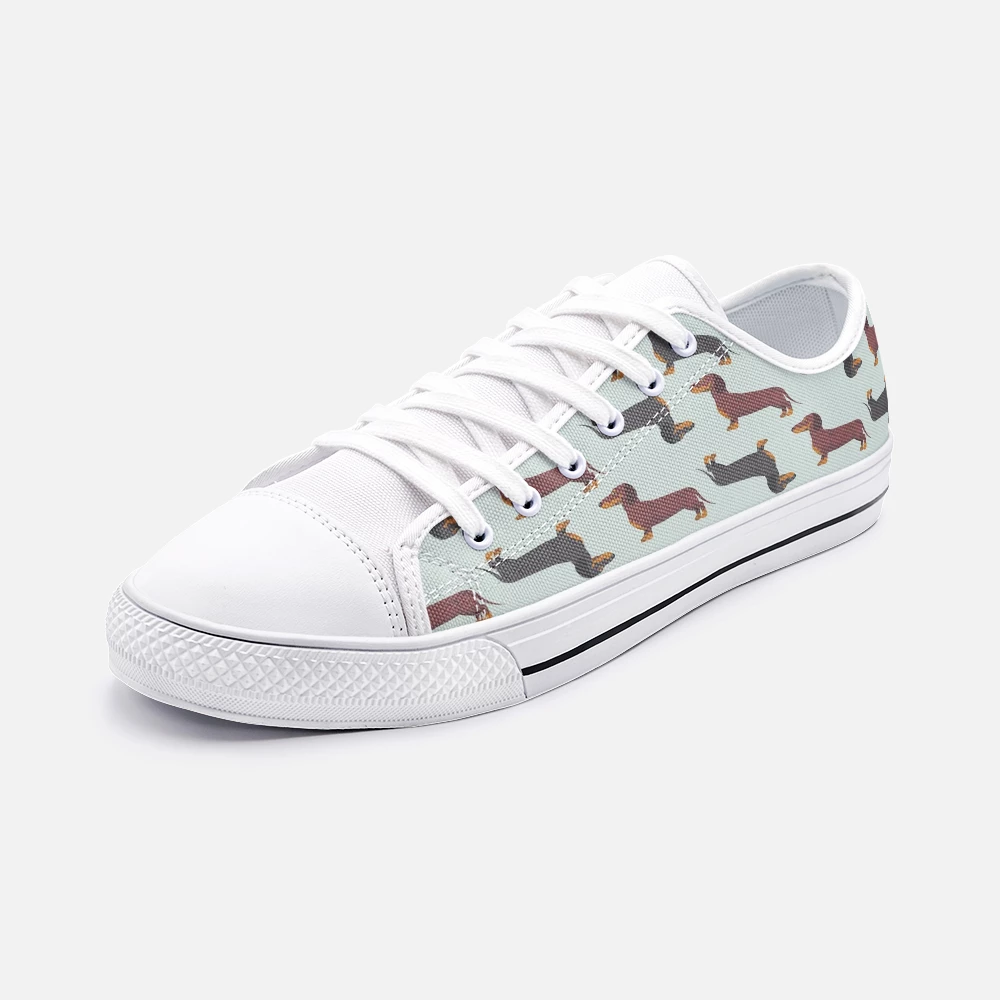 Step up your sneaker game in these cool Lo Top Canvas sneakers with cute Dachshund pattern. With a rounded toe construction they feature soft textile lining, and lightweight construction for maximum comfort. The lace up closure ensures a snug fit with metal eyelet for a classic look. The high quality outsole provides traction and exceptional durability.