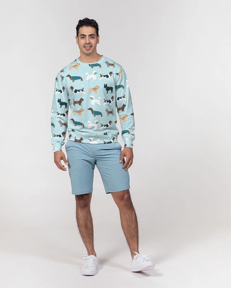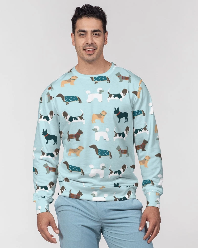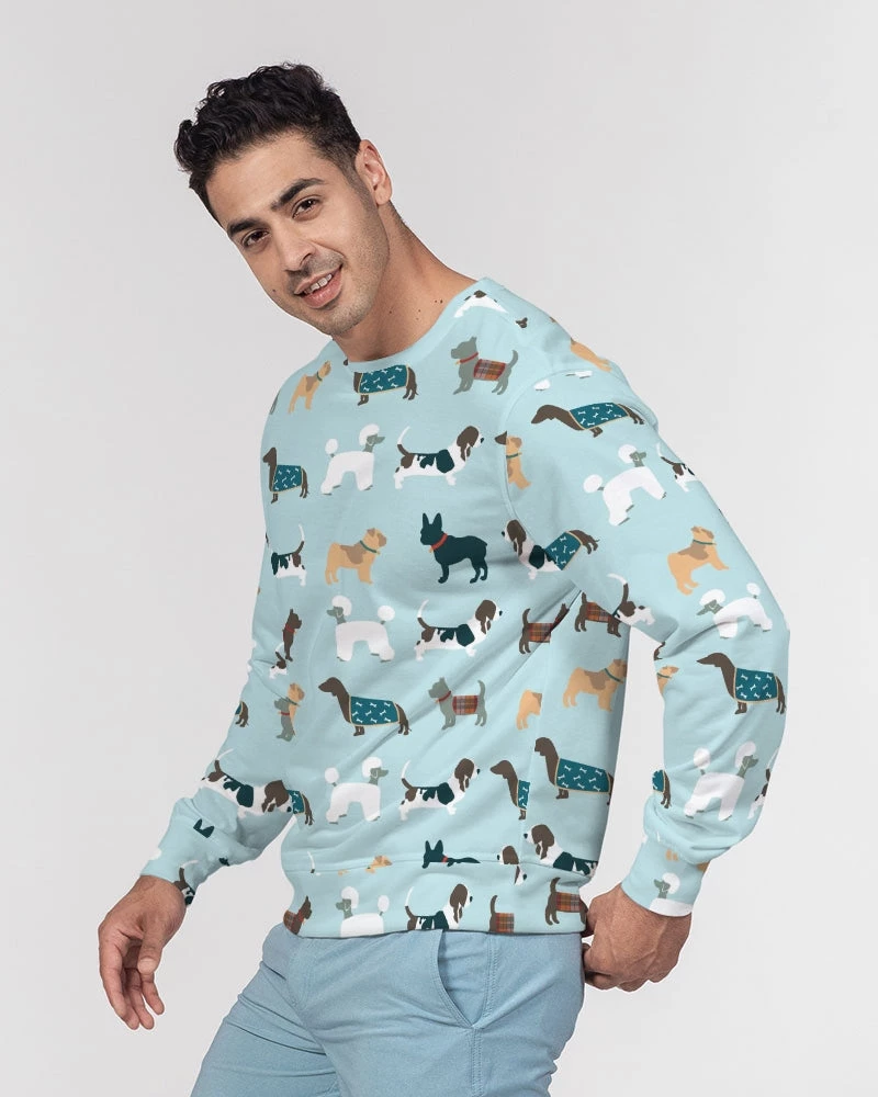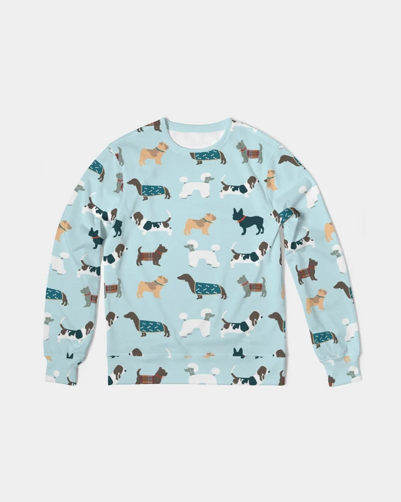 | Our Dog Pawty Classic French Terry Crewneck Pullover Sweatshirt features an all over super cute dog pattern. Its regular fit is not too big, but not too tight so you can layer it or wear it alone. Finished with a smooth surface on the outside and loop knitting inside for the right amount of warmth and comfort.