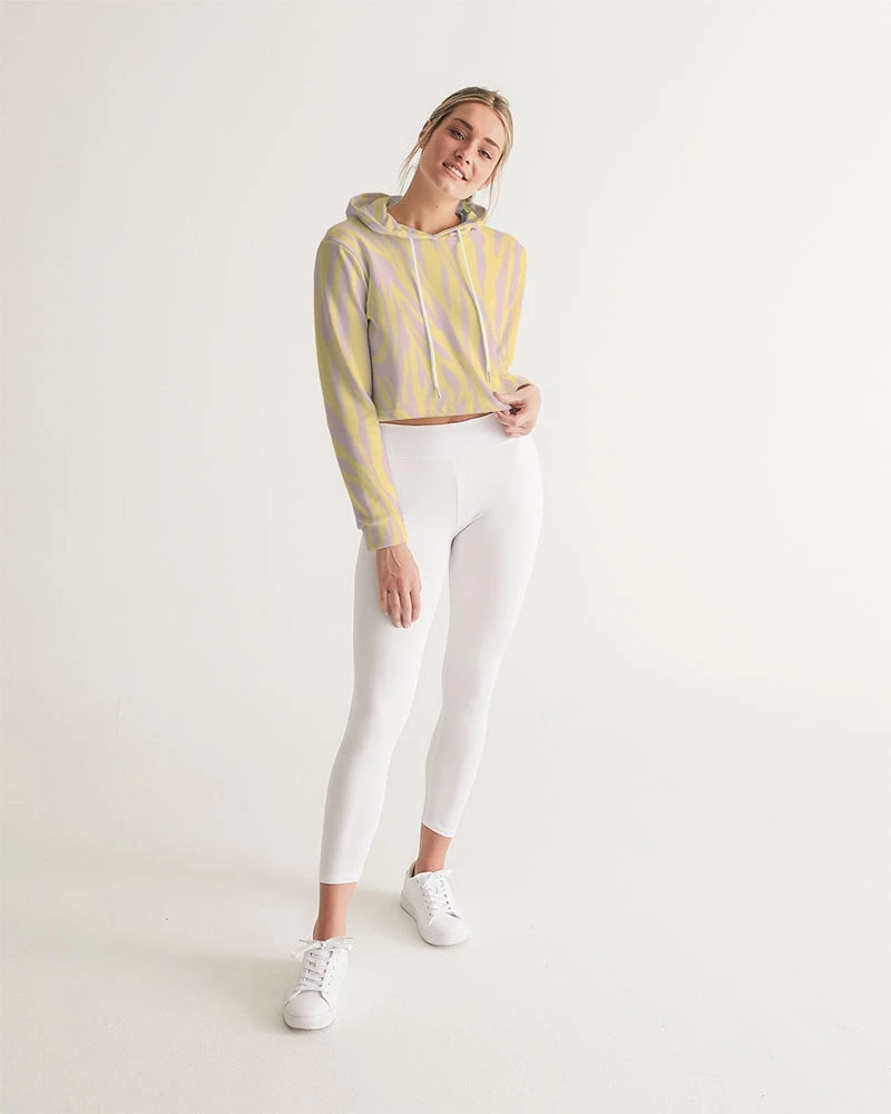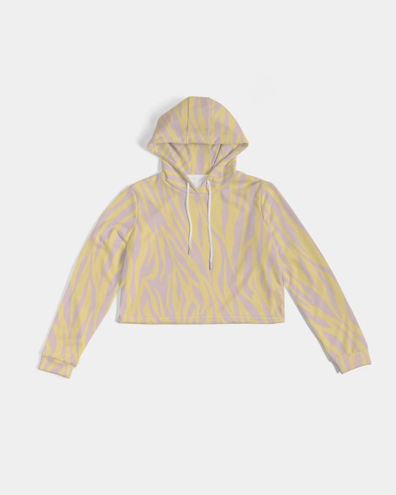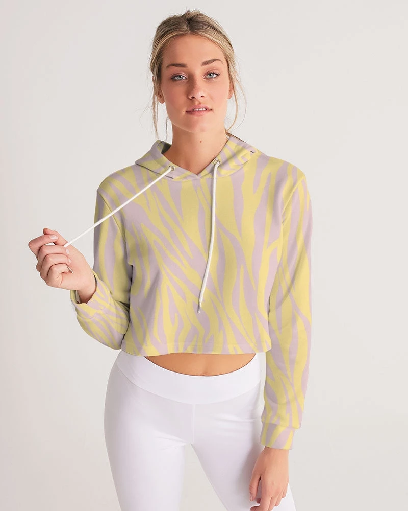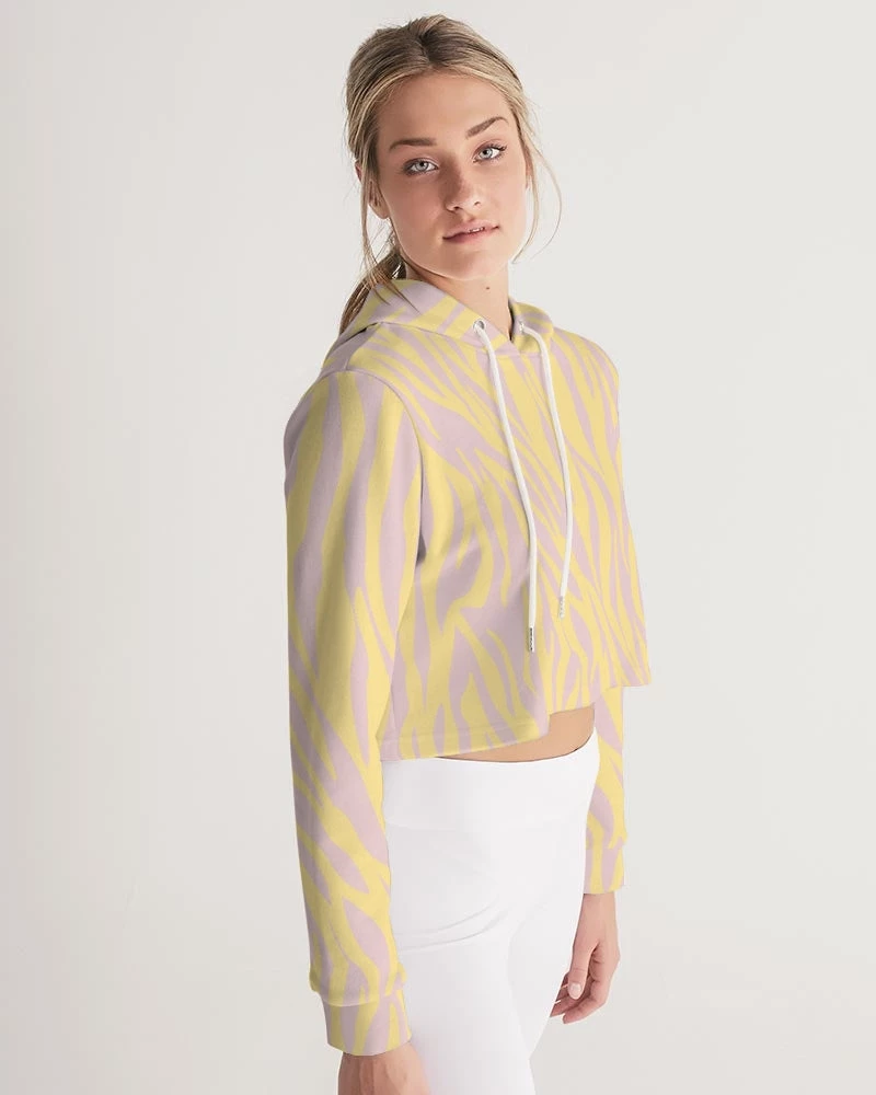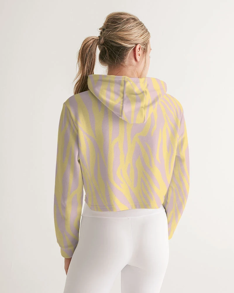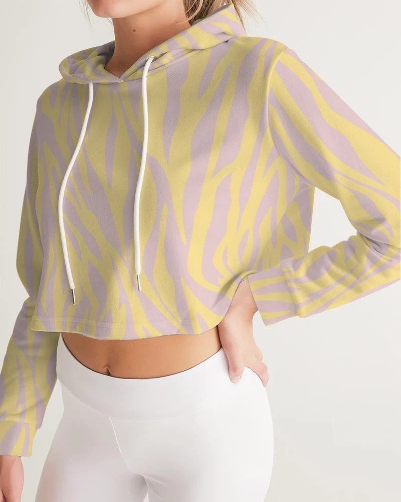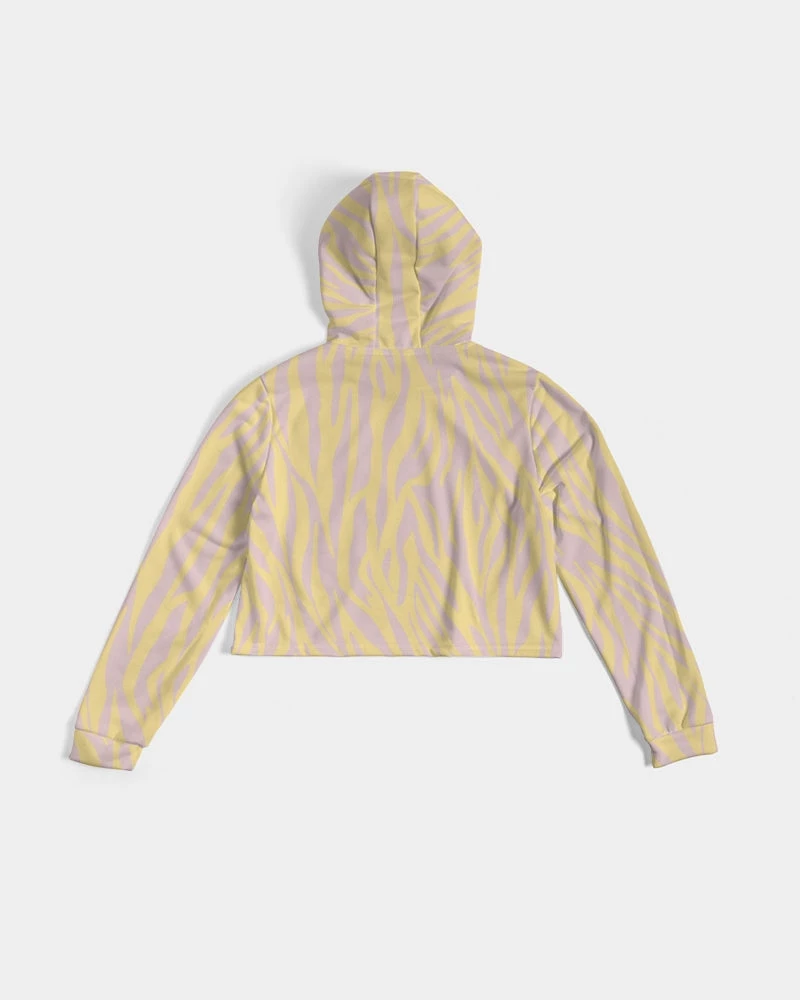 | Our Dust Storm Zebra Womens Cropped Hoodie features a vibrant zebra print in dusty pink and yellow. The ultra-soft fabric feels great against your skin.