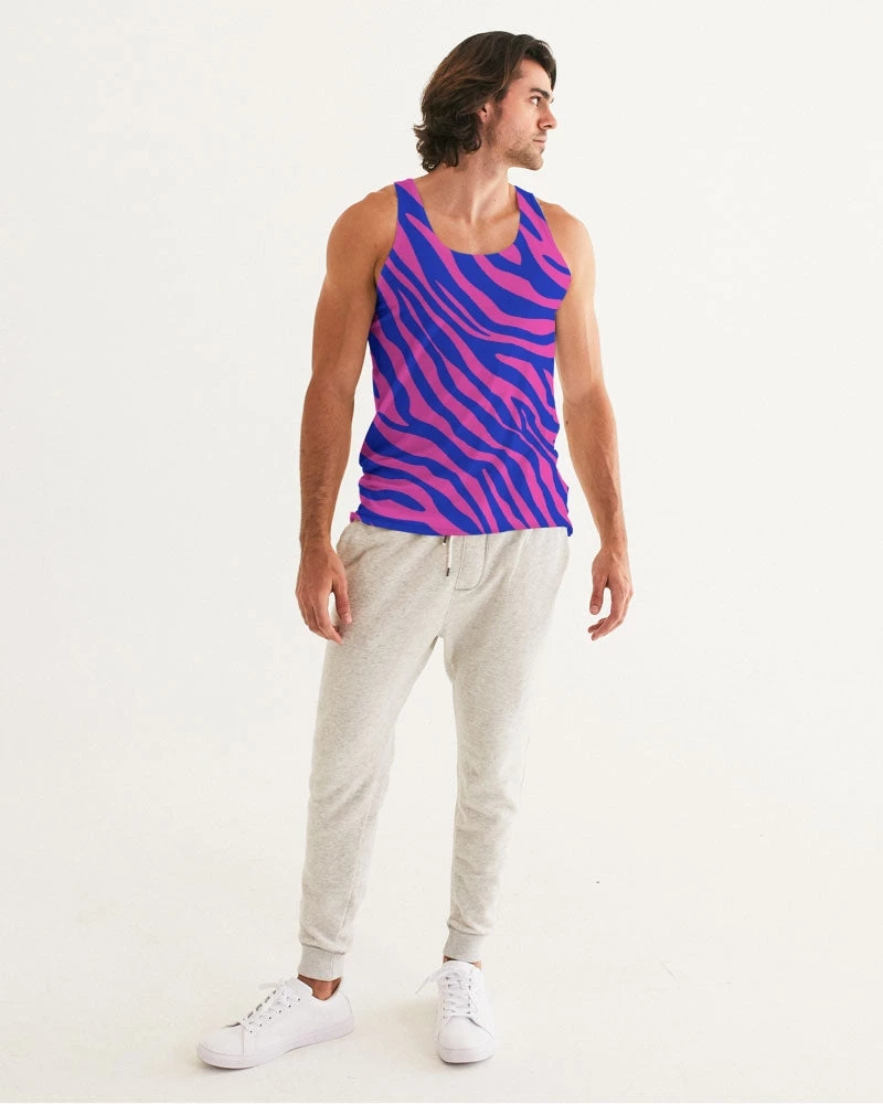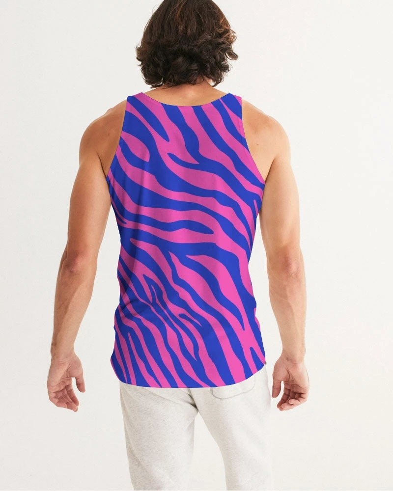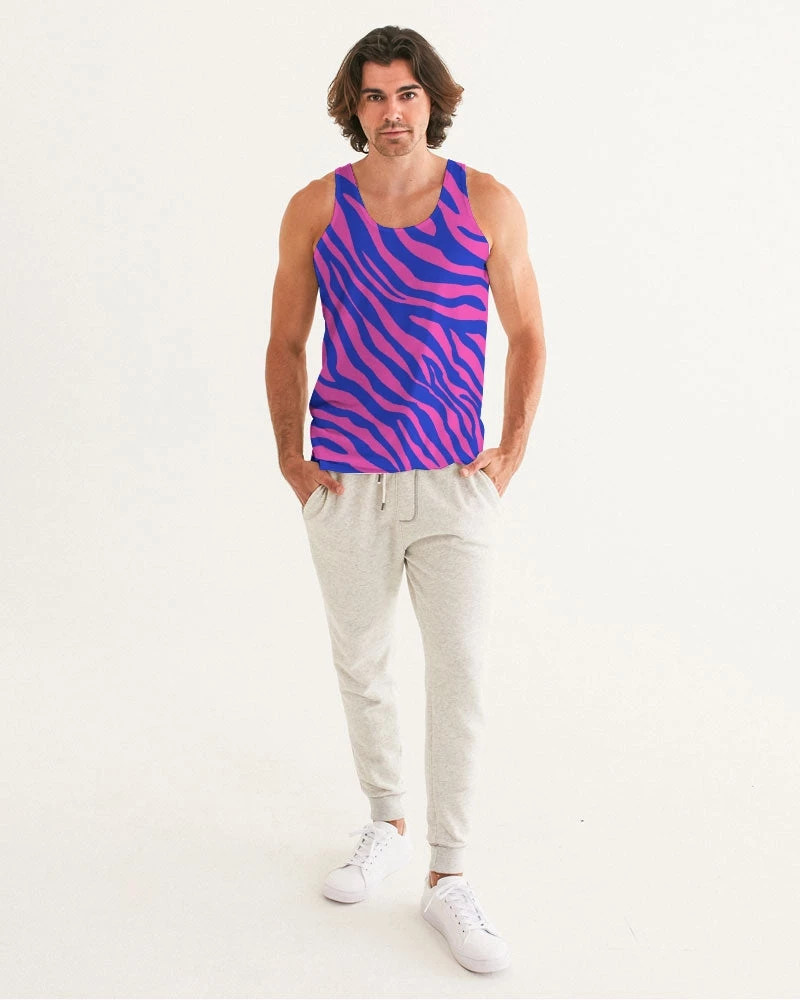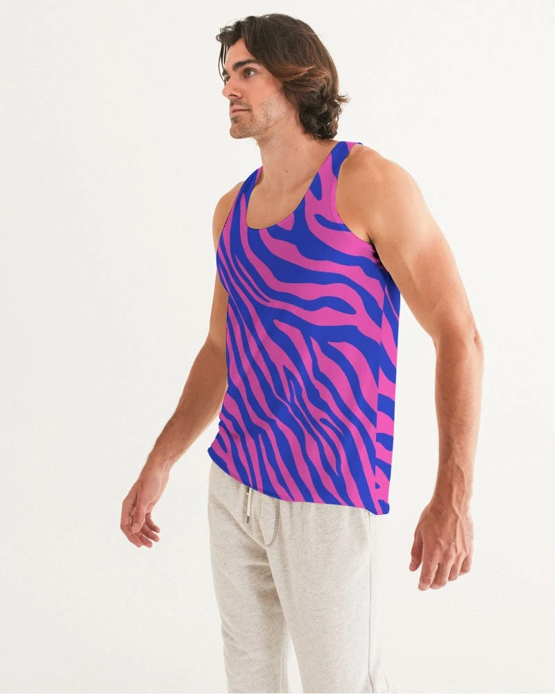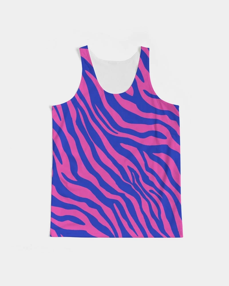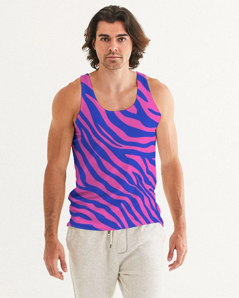 | Our Electric Zebra Men’s Tank Top is not for introverts. This bold zebra print in deep rose and blue will have you making a statement at the bar or out for dinner. A designer tank to add to your collection. It has a slim fit and breathable fabric guaranteeing style and comfort.