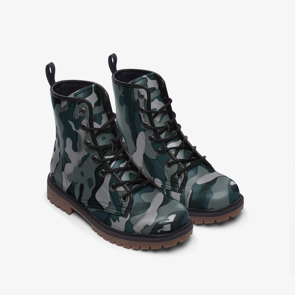 Our green camo Lace Up Boots are fierce, with a strong military style all over print.