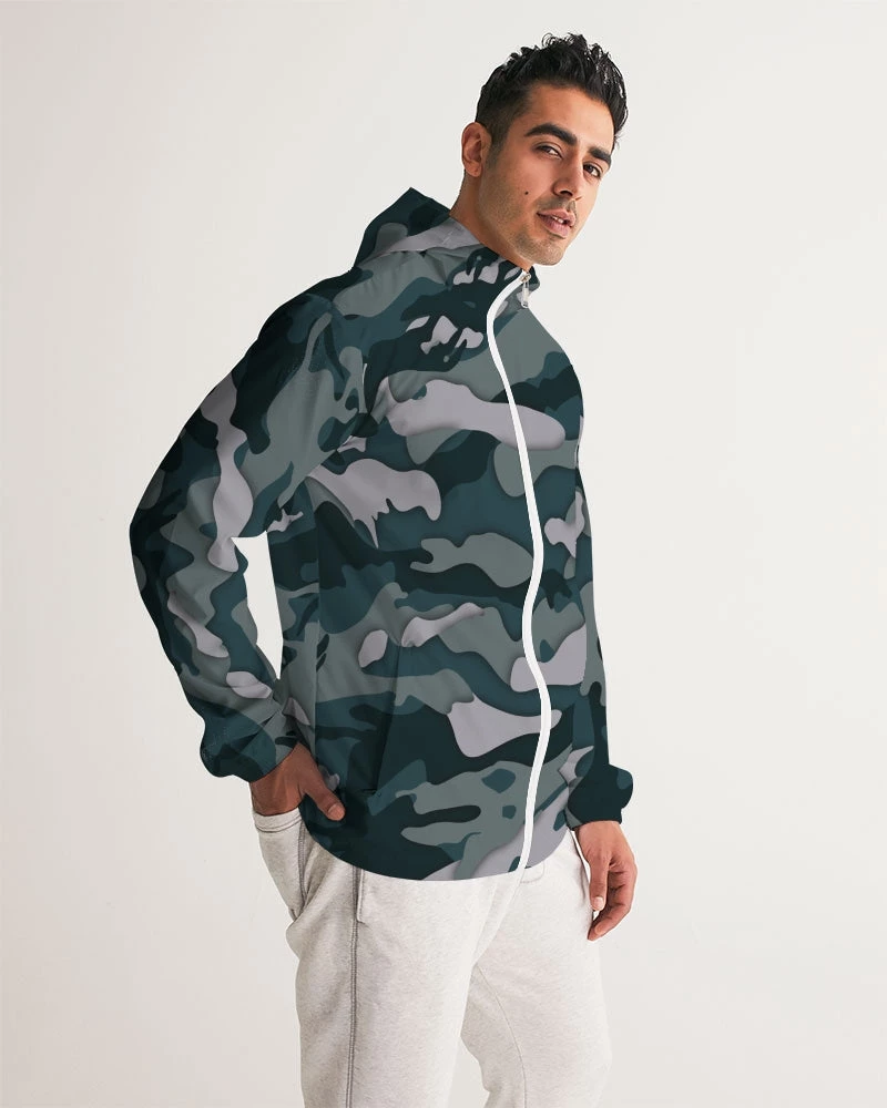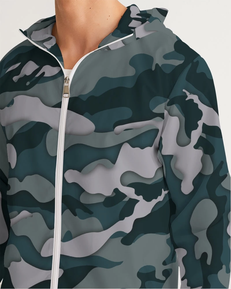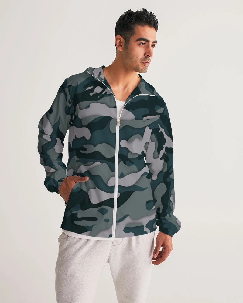 | Gear up for windy and rainy seasons in this classic Men’s Camo Windbreaker jacket. Handmade with lightweight, water-resistant fabric, and full mesh lining that can layer easily over a Tank or Tee.