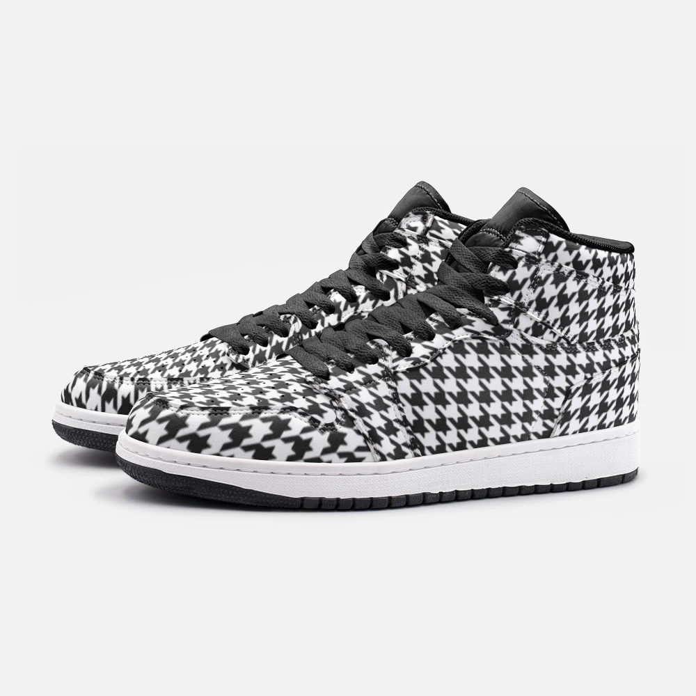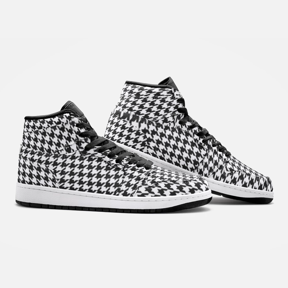 Enhance your outfit with these super cool Houndstooth check sneakers. A timeless check on a contemporary sneaker. Our houndstooth black & white check shoes feature a rubber sole, and non-marking rubber outsole for traction and durability. The perforated toe box provides breathability to keep your feet cool.