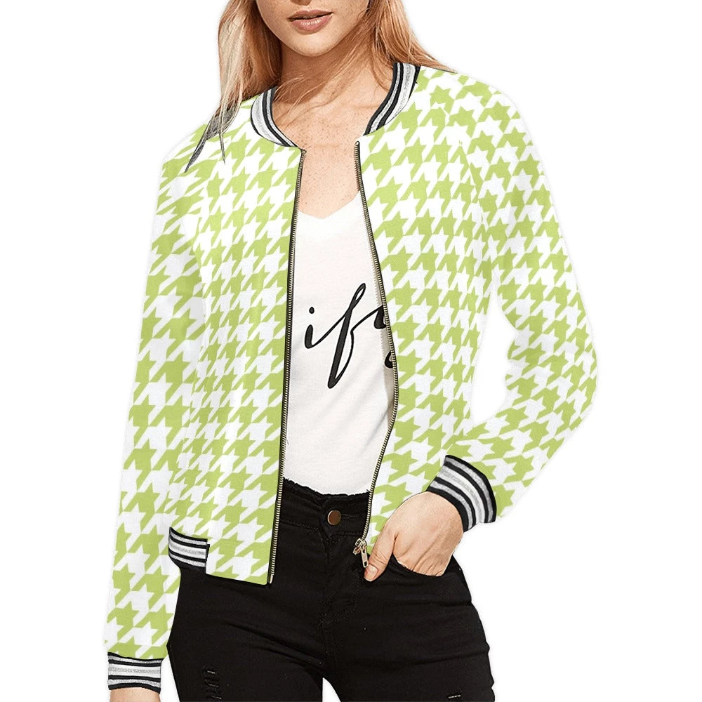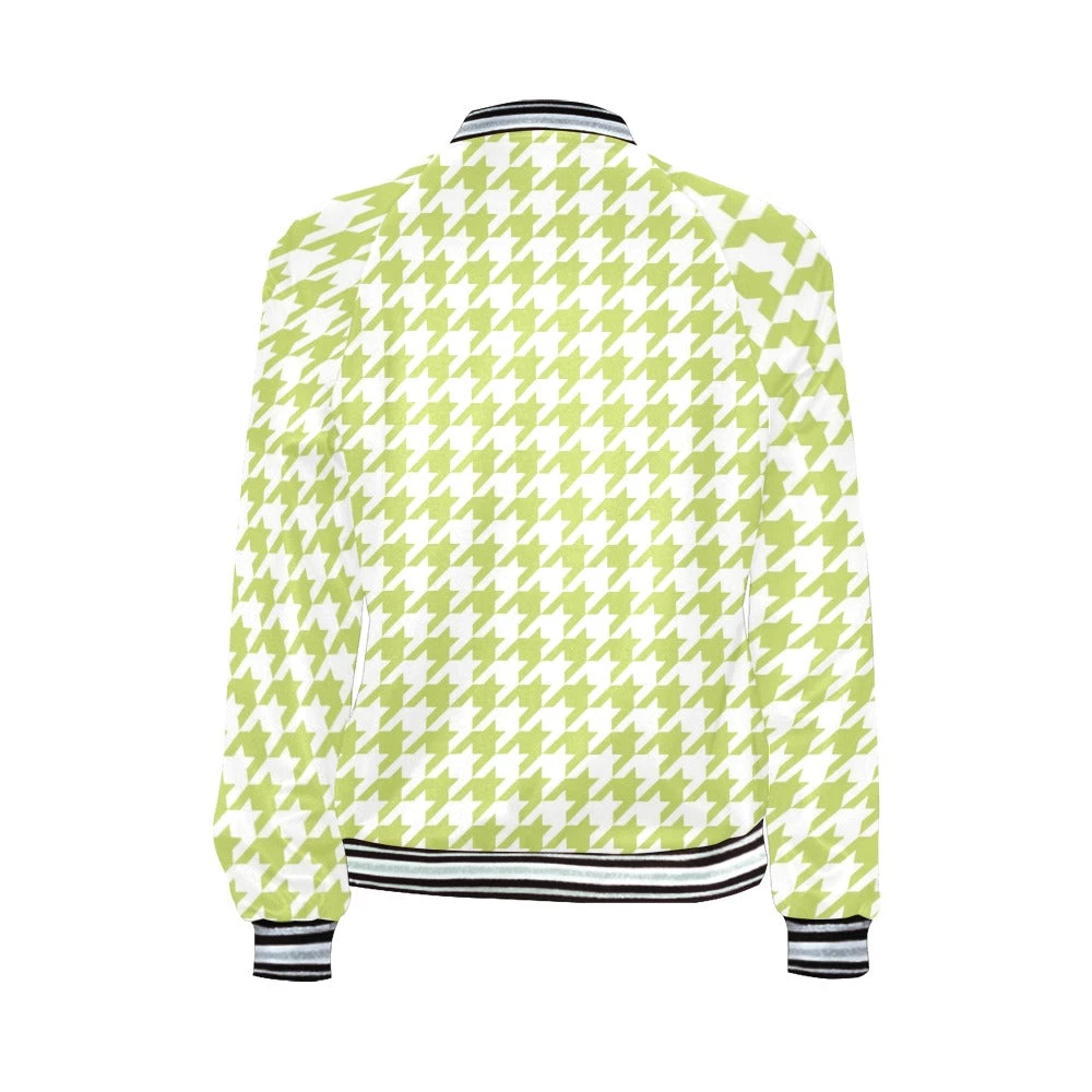 Our Lime Houndstooth Jacket is totally unique. The all over houndstooth pattern in a modern lime color is bound to be noticed. This jacket features a striped ribbed collar and cuffs for a point of difference.