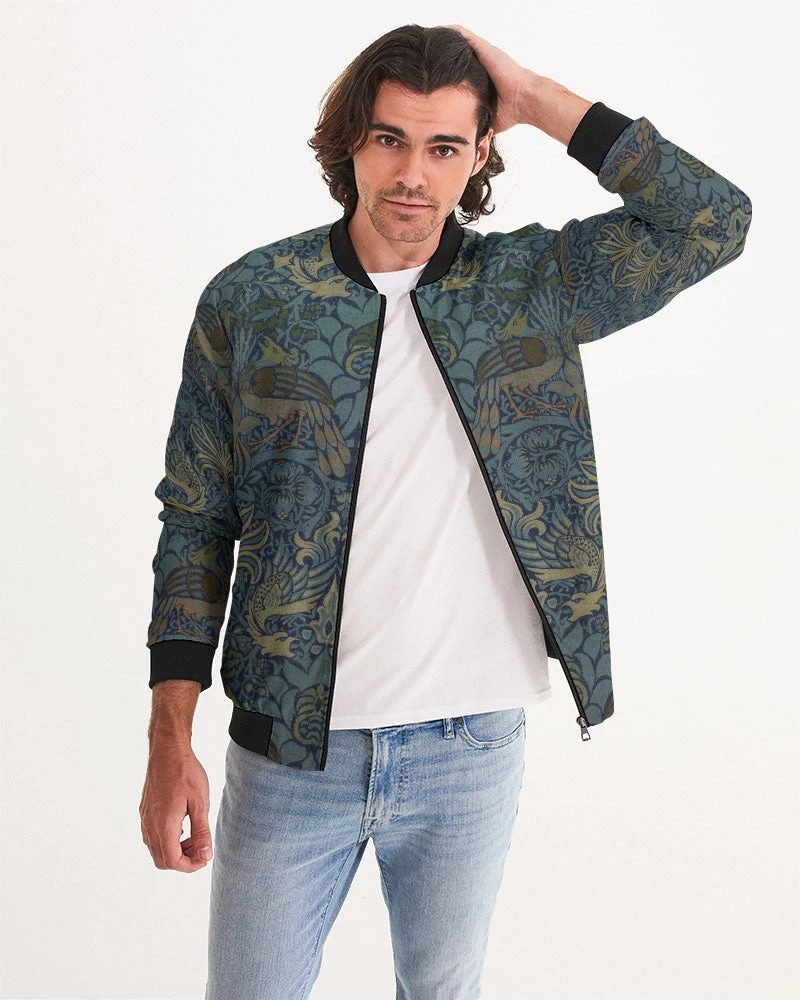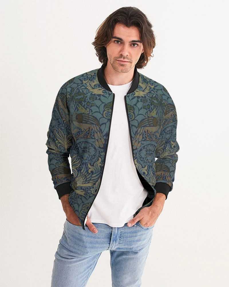 | Our Peacock & Dragon Bomber Jacket is hand-cut and crafted with care. The lightweight, airy fabric is lined with the perfect amount of insulation for the chillier months making this a great year round go-to. The design features a vintage style Asian inspired print with peacocks and dragons. A designer jacket you won’t find in the stores.
