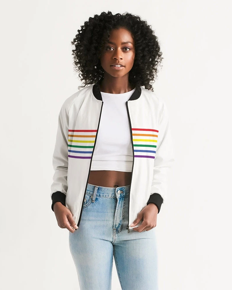 SKU: harlow-lloyd-6659735617671 Categories: Collections, Jackets, LGBT / Pride, Women Tags: Bomber Jacket, Clothing, Jacket, LGBT, Pride, Rainbow, Women