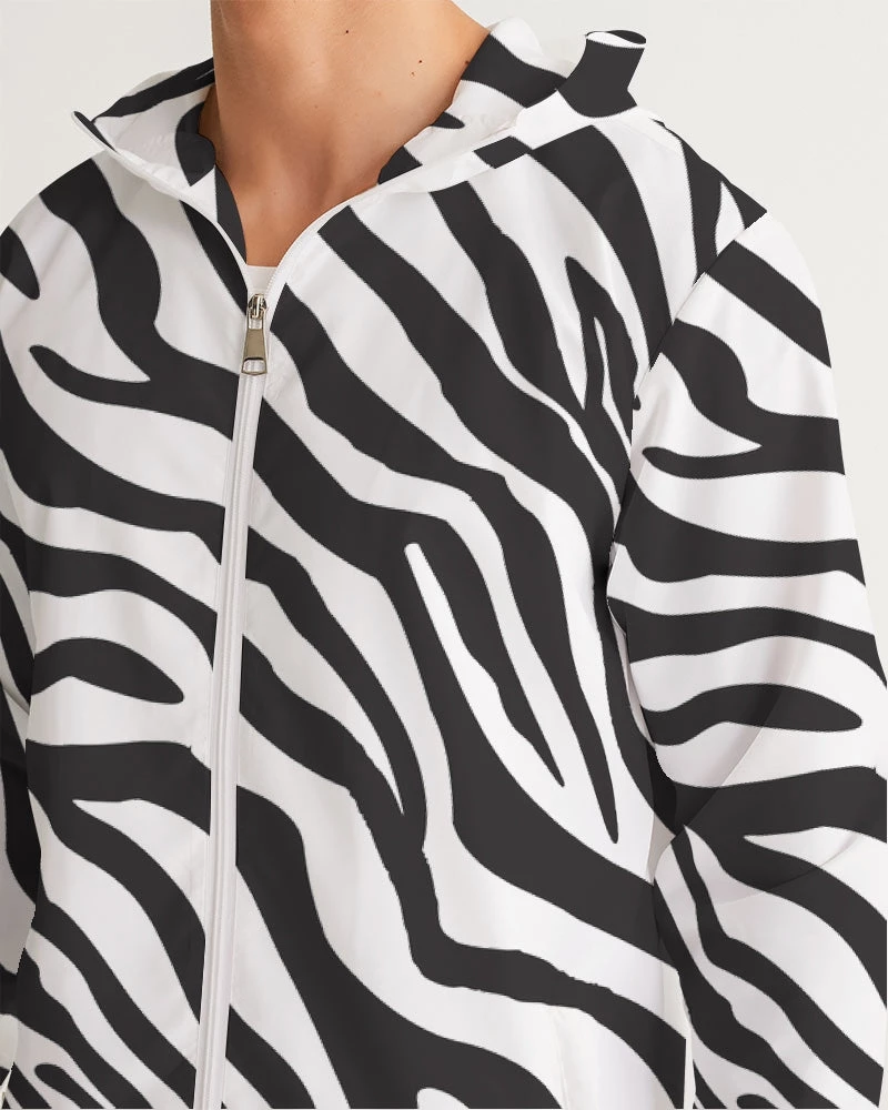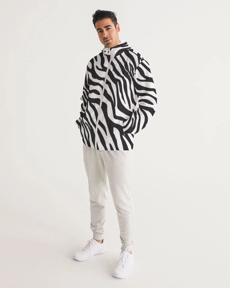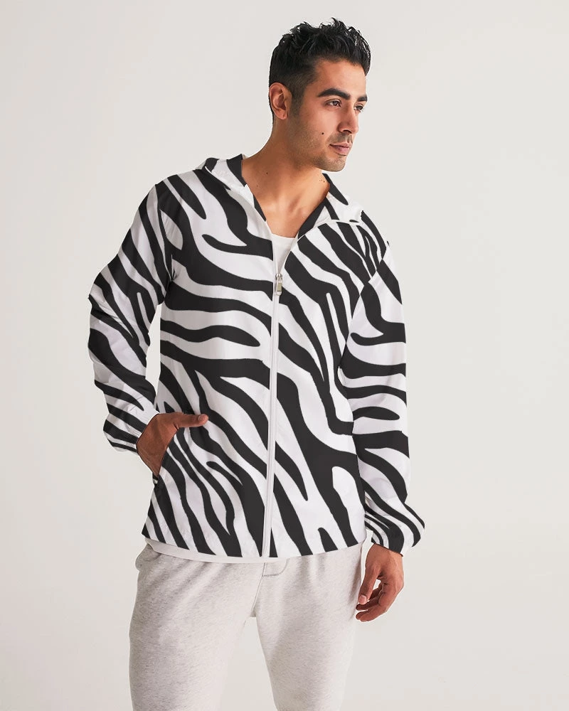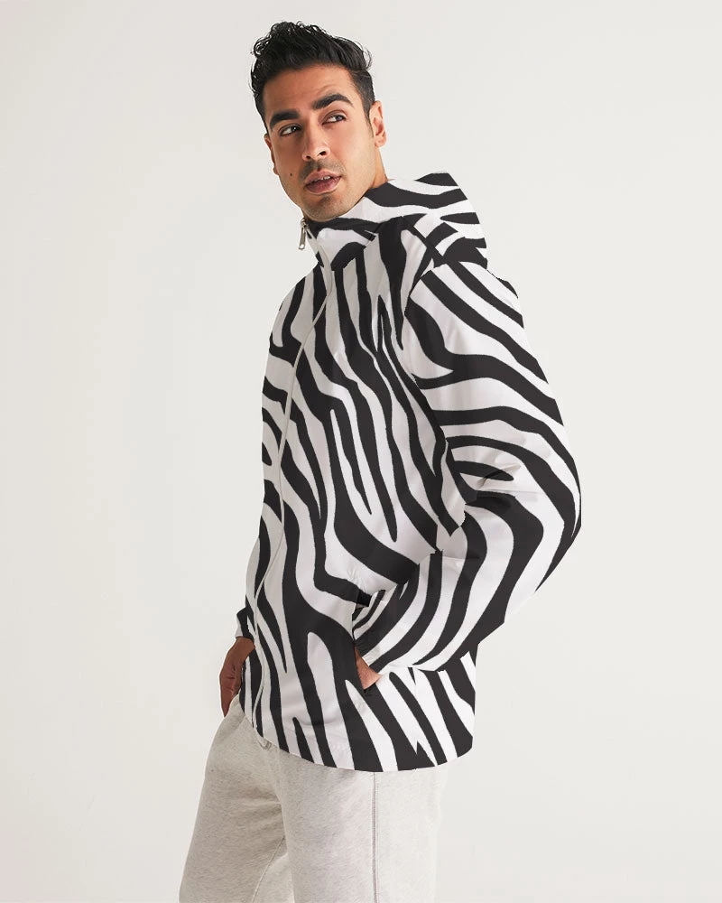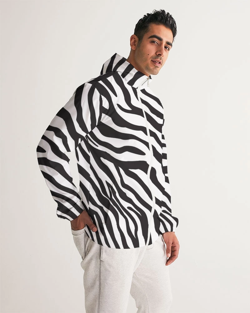 | Offering full protection from the elements, our Zebra Print Men’s Windbreaker features all over Zebra print. High fashion and not for the faint hearted. It is handmade with lightweight, water-resistant fabric, and full mesh lining that can easily layer over a sweater or tee.