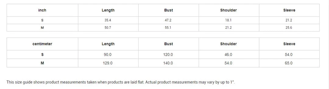 | centimeter | Length | Bust | Shoulder | Sleeve |