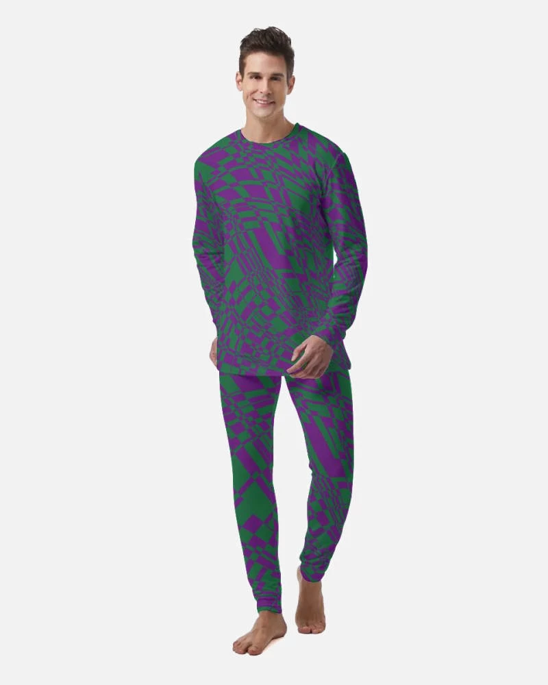 Our Leprechaun Men’s PJ set features on-trend colors in a super cool abstract pattern. The super soft fabric provides warmth and comfort while sleeping or lounging. This is a two piece set featuring a PJ top and long john pants. Pair with one of our short or long robe’s to complete the look.