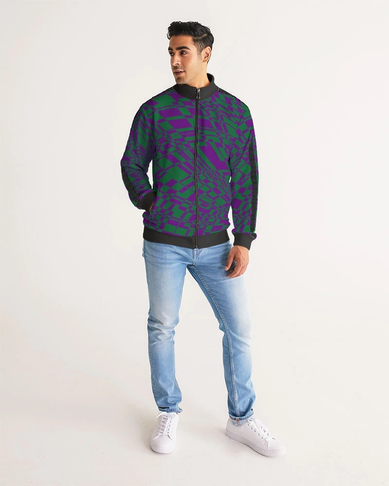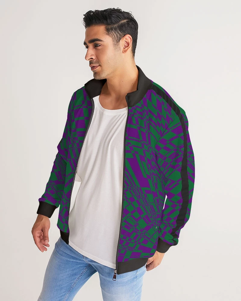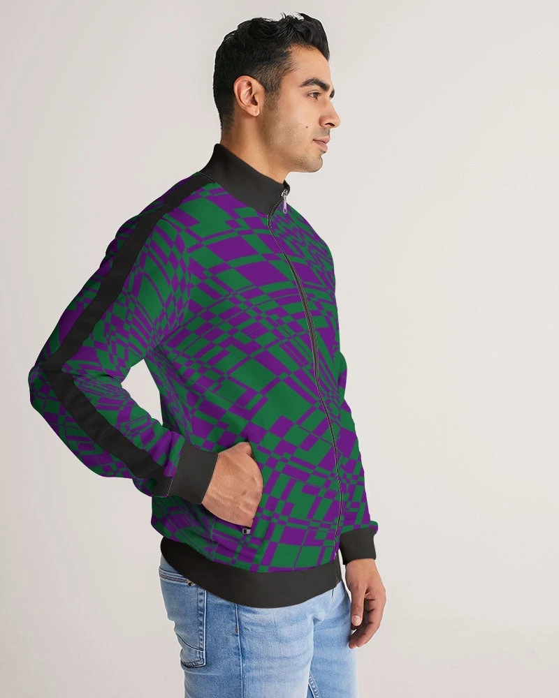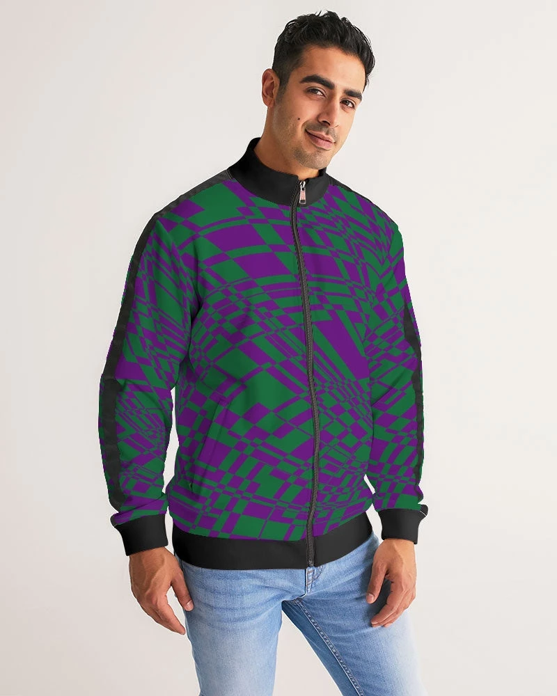 | Our Leprechaun Stripe-Sleeve Track Jacket is totally unique. This casual jacket features an abstract print in purple and green. Its ribbed collar, cuffs and hem are the details to make this your daily go-to or top layer whether you’re hitting the gym, or the mall.