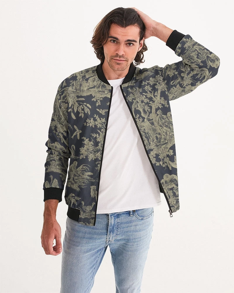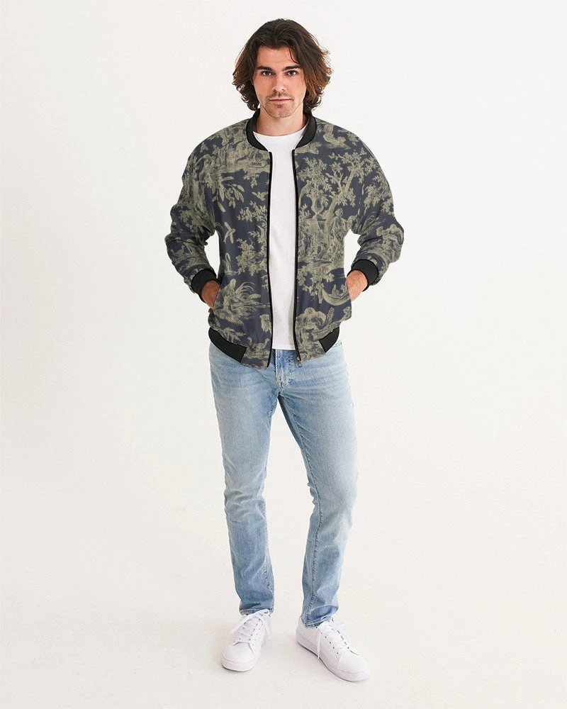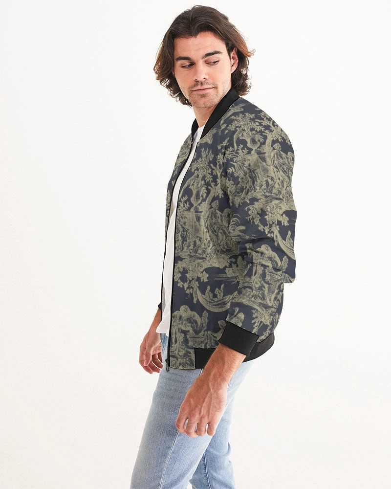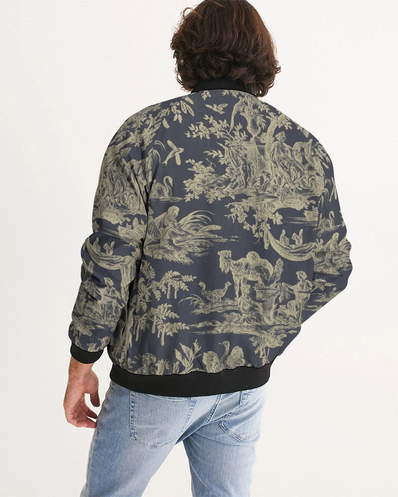 | Our Life is Beautiful ‘La Vie Est Belle’ Vintage Bomber Jacket is all style. The lightweight, airy fabric is fully lined for a premium feel. Fully versatile to be worn daily or for special occasions. Pairs perfectly with black pants, or jeans – the choice is yours. Will take your outfit to a new level, and bound to strike a conversation. A stunning vintage designer jacket with an 18th century french print depicting the four parts of the world in navy and gold.