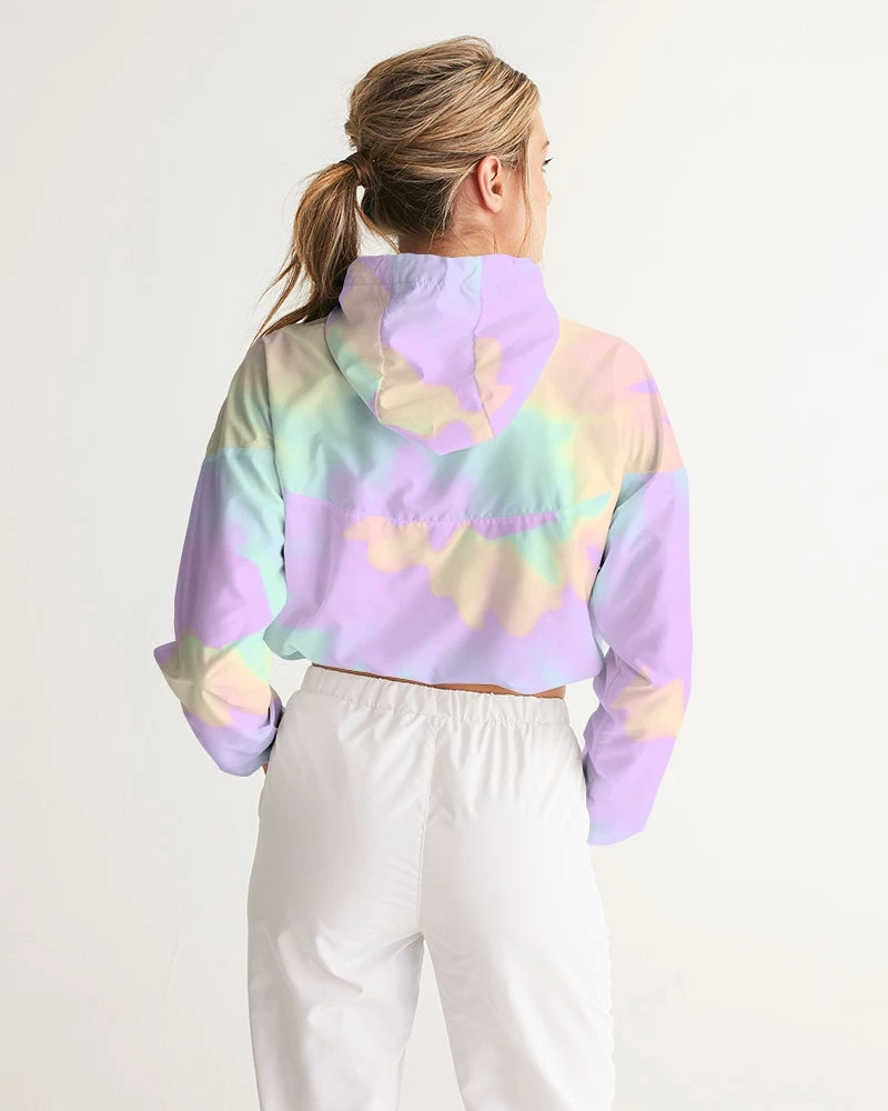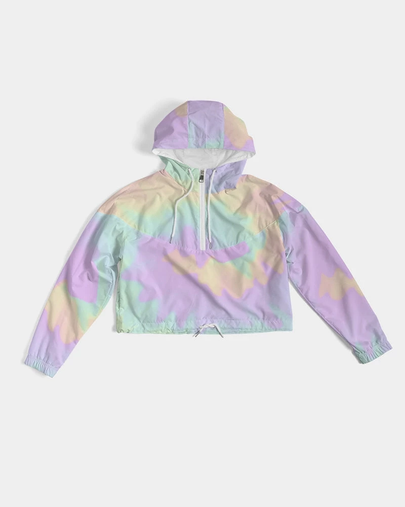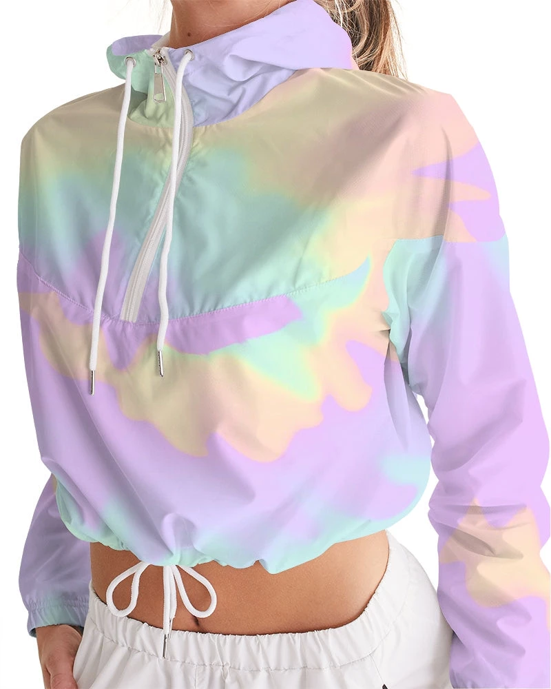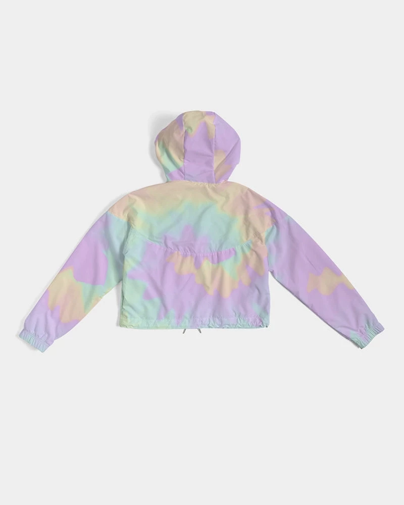 | Our Lilac Mint Tie Dye Cropped Windbreaker features an all over pastel print in purple, green and orange. Made of lightweight, water-resistant fabric, this windbreaker has flexible styling options. Perfect with activewear, joggers, pants and jeans it is versatile enough to be worn on a run, at the mall or a night on the town. Premium quality design with full lining. The bright pastel print makes and cold and dull day warm.
