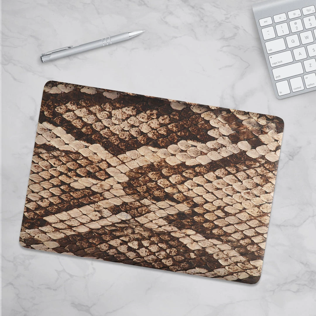 Our Brown Snakeskin Macbook Case protect’s both the top and bottom of your laptop from scratches, chips, and accidents. It’s the perfect accessory to protect your asset from general wear and tear.