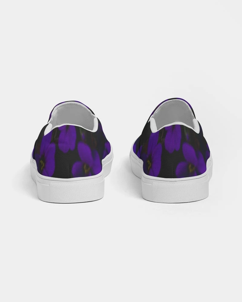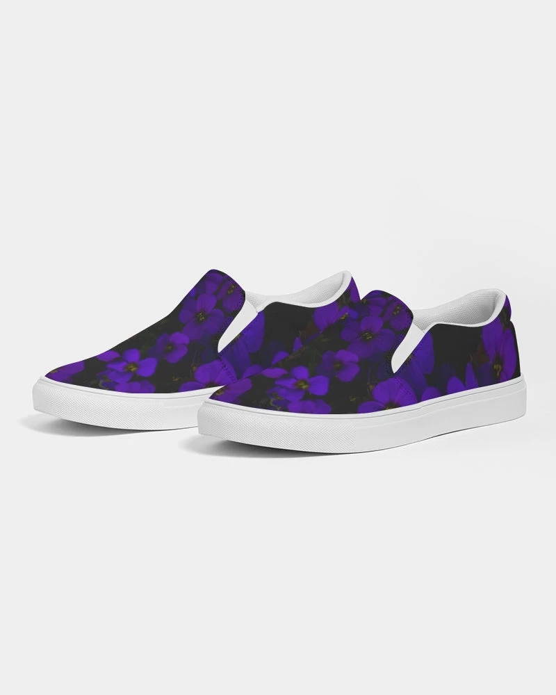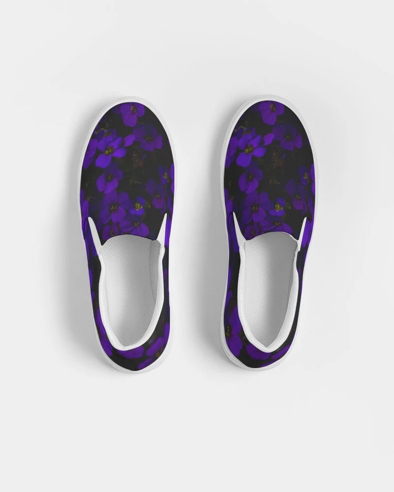 | Our Midnight Purple Women’s Slip-On Canvas Shoe feature a gorgeous dark purple flower print. Equipped with removable soft insoles and rubber outsoles, they are easy to take off and put on. Wear daily for all day comfort.