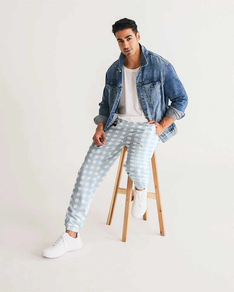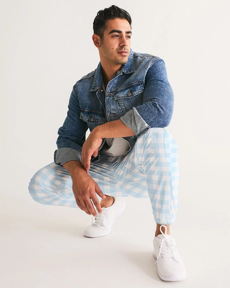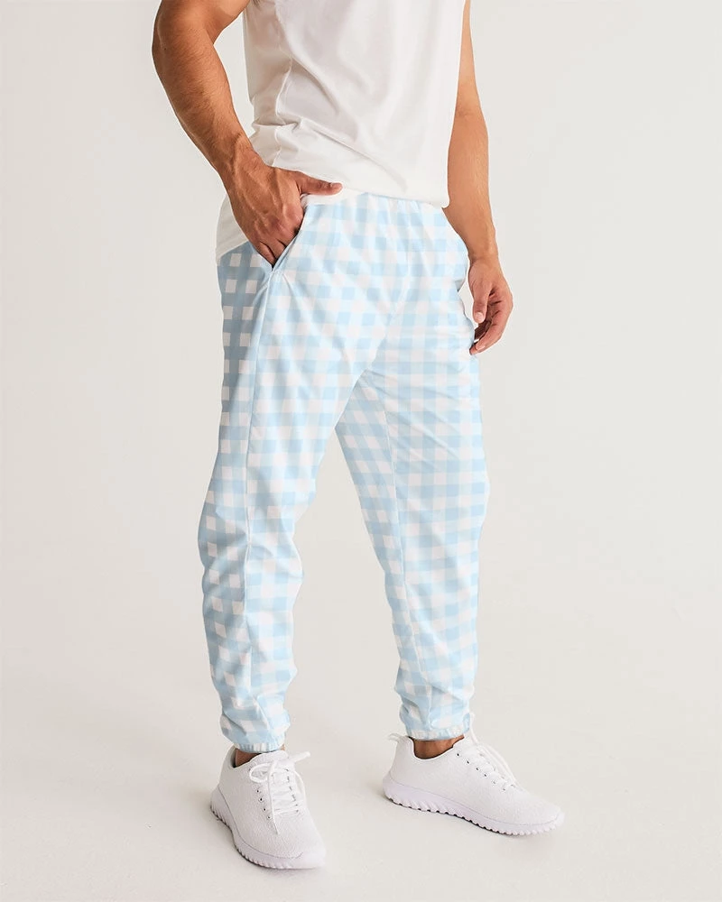 | Our Pale Blue Gingham Men’s Track Pants are both lightweight and versatile. The water-resistant fabric keeps you dry and comfortable in any active situation. The relaxed fit makes them great street-worthy style. Premium style they are fully lined with mesh lining. A classic gingham check print on contemporary pants.