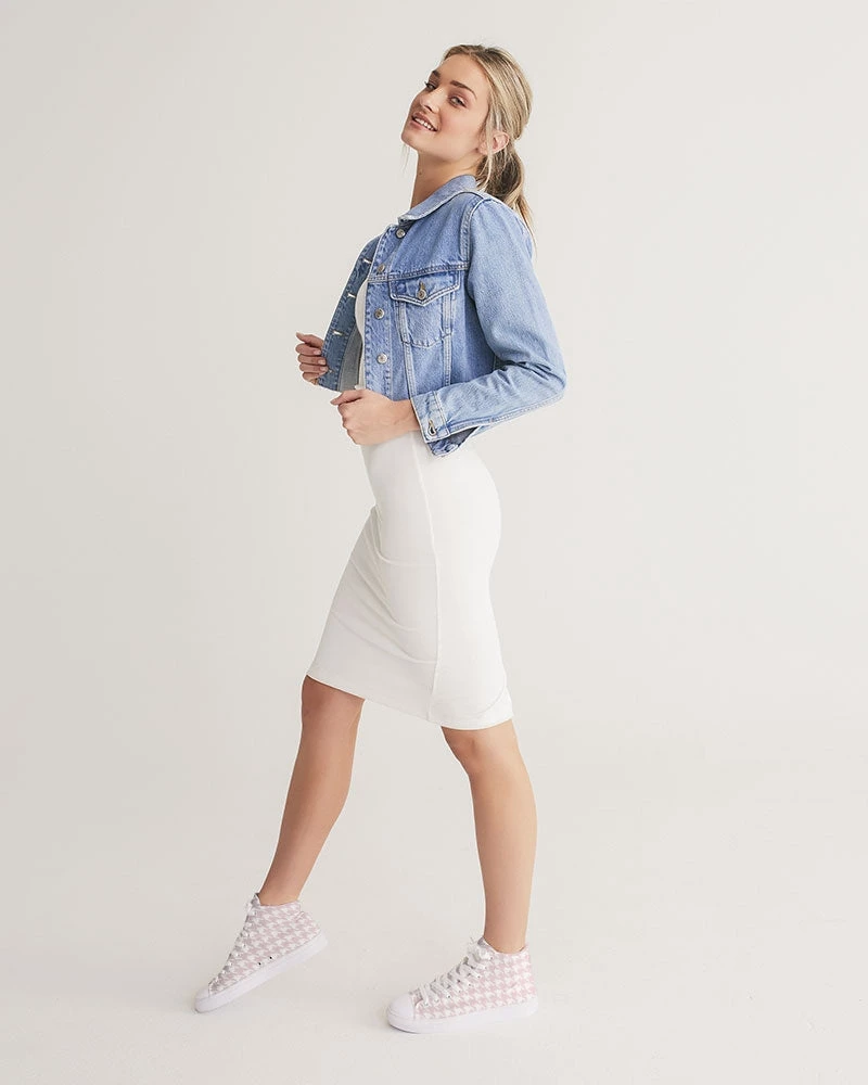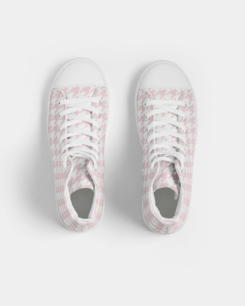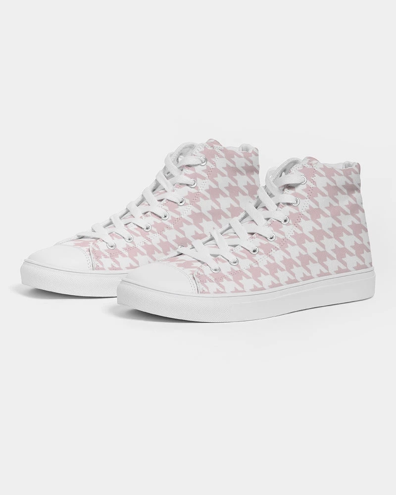 | Our Pale Pink Large Houndstooth Women’s High Top Canvas shoes feature the classic houndstooth pattern in Pale Pink. Made for all day comfort the houndstooth pattern has a sophisticated feel to it. Elevate your outfit with these minimalist pale pink shoes which can be worn with almost any color. Soft and breathable, these will be your daily go-to.