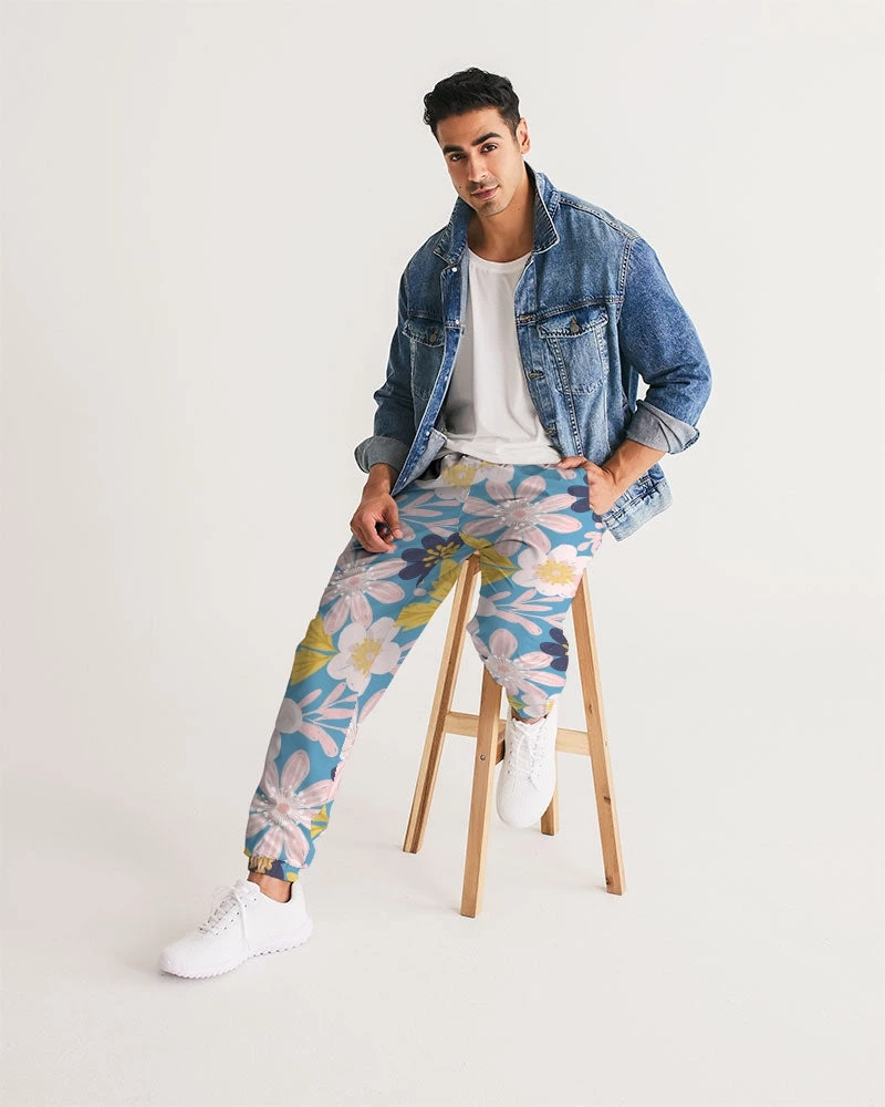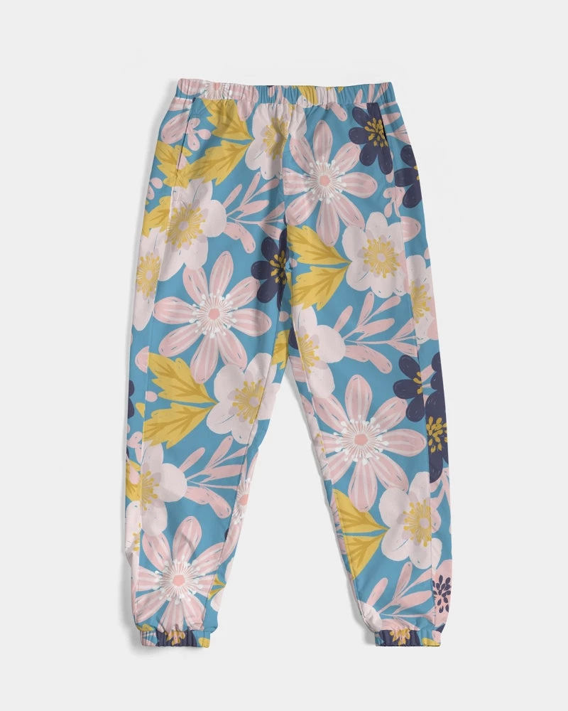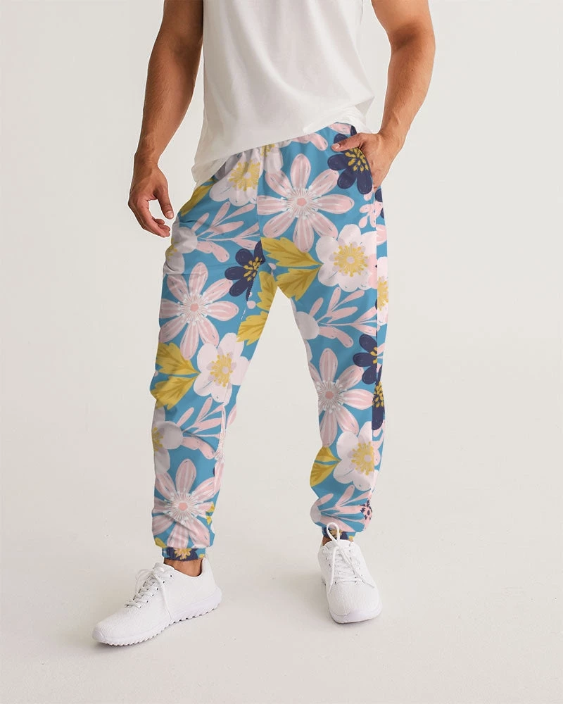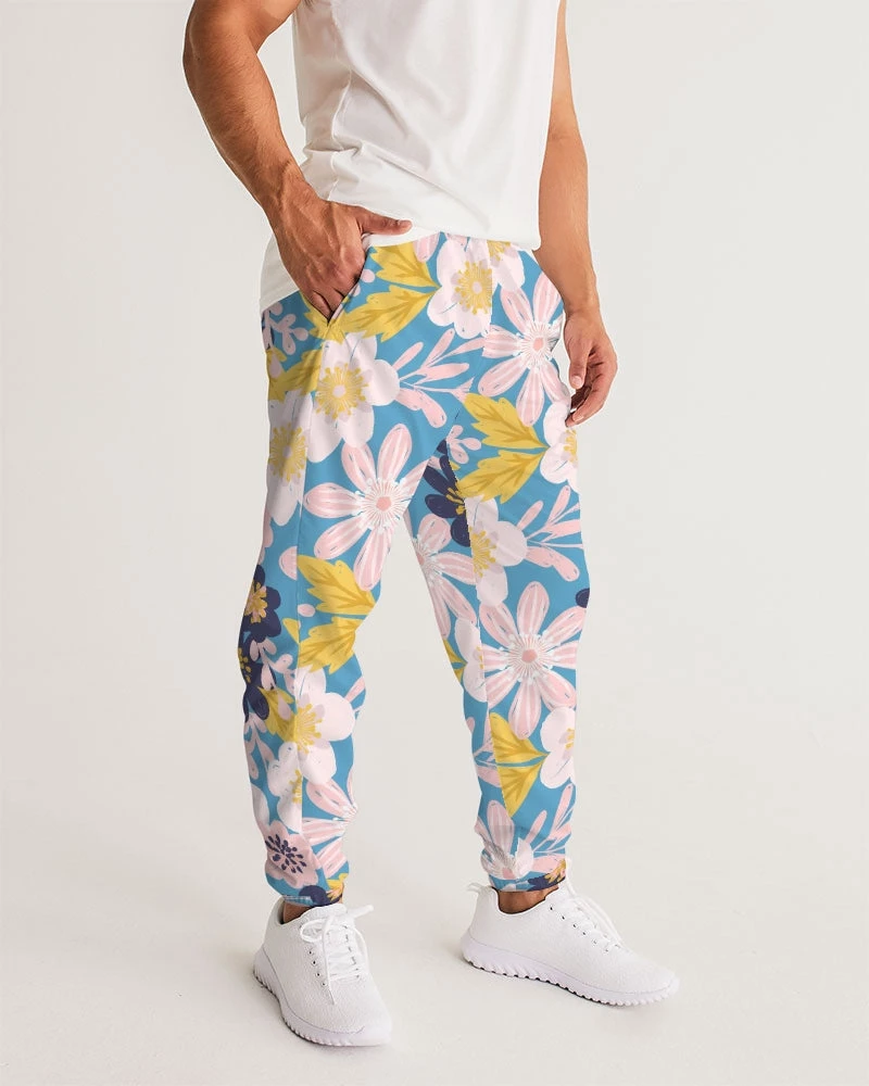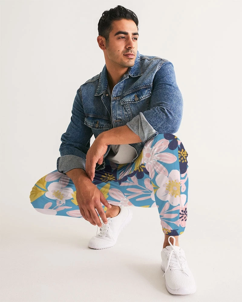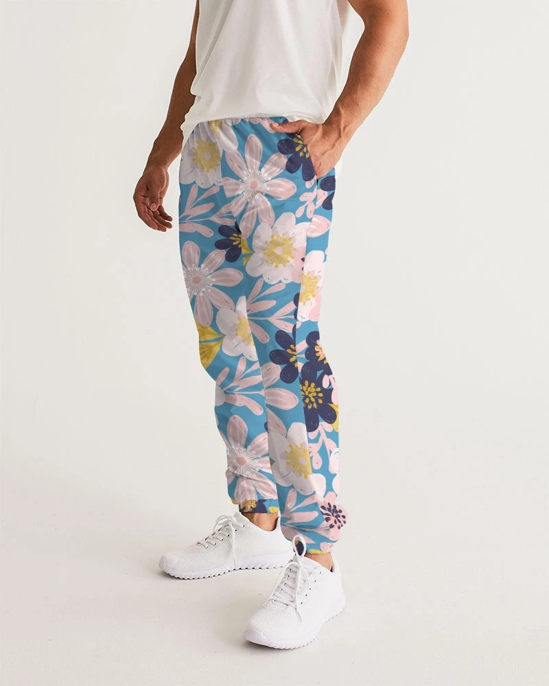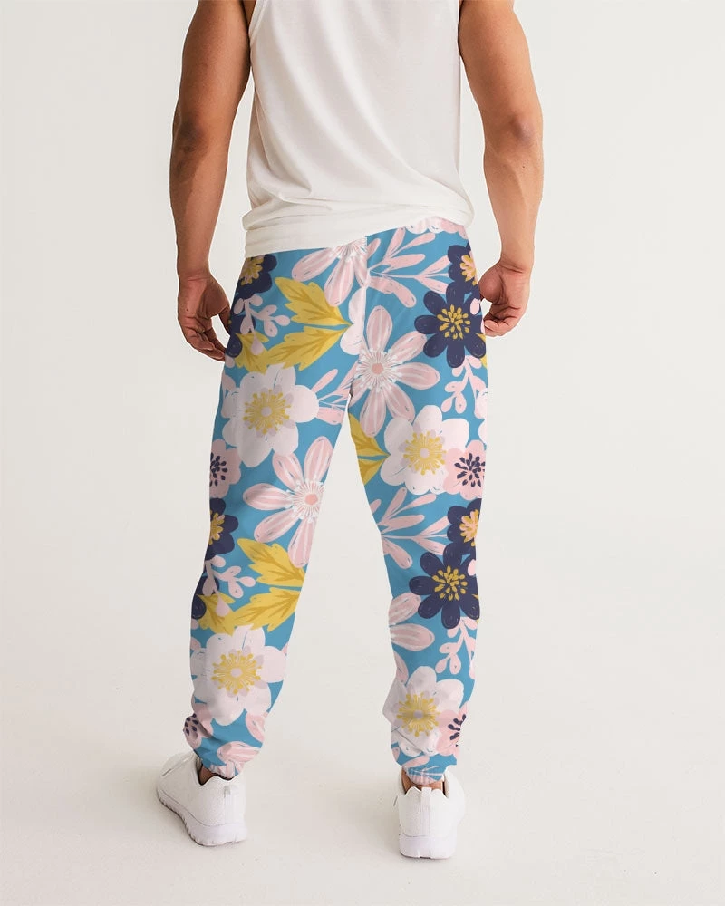 | Our Blue Frisky Floral Men’s Track Pants are both lightweight and versatile. Premium style, they are fully lined. The water-resistant fabric keeps you dry and comfortable in active situations. The relaxed fit makes them street-worthy style. Super cool floral pants in blue, pink and yellow tones to stand out from the crowd.