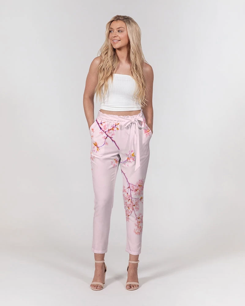 | Designed to sculpt your figure in all the right places, our Pink Cherry Blossom Women’s Belted Tapered Pants are comfortable and effortless. Made from smooth chiffon with moderate stretch and finished with a high-rise waist and tapered cut.