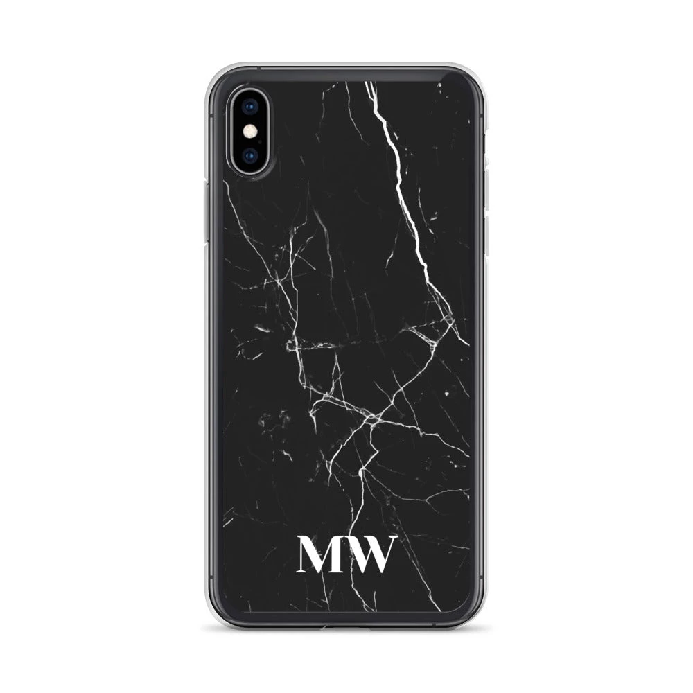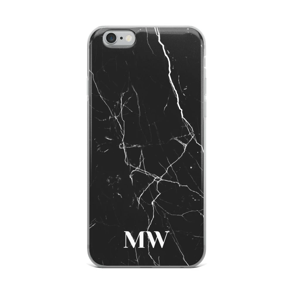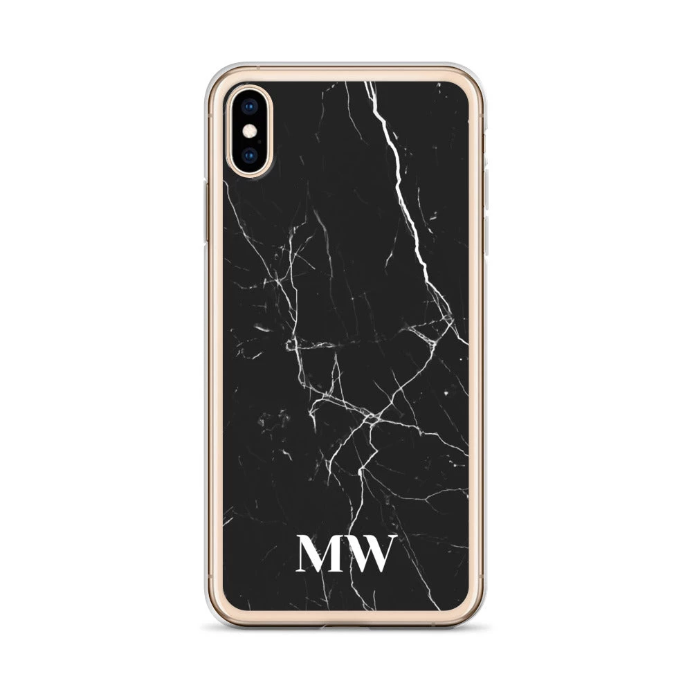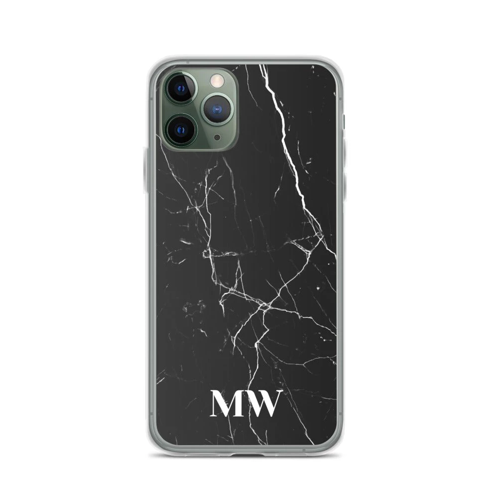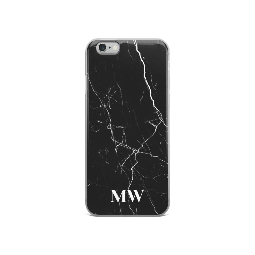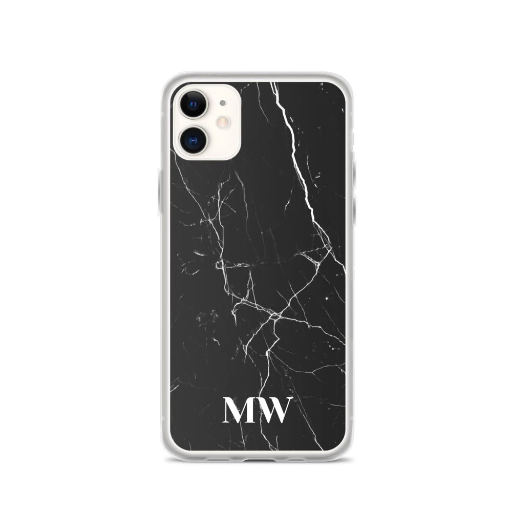 Personalize this sophisticated Black Marble iPhone case with your initials or name.