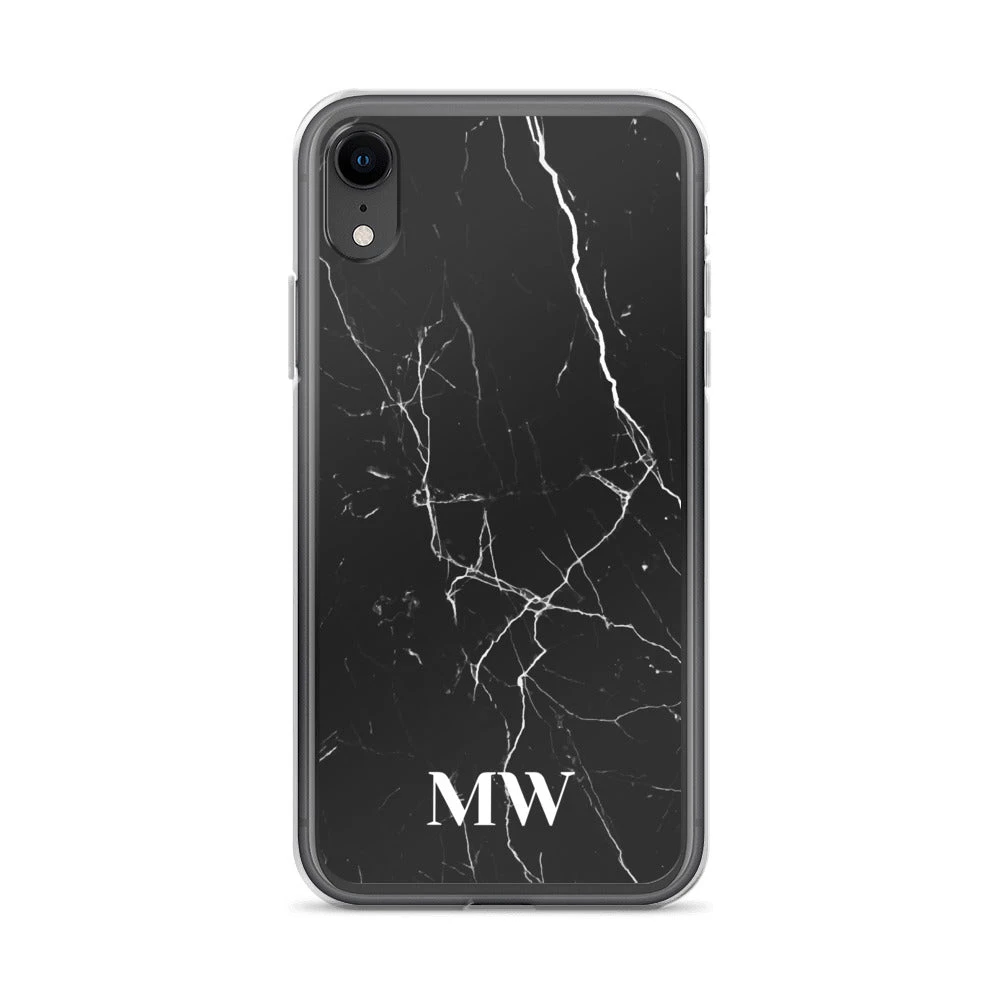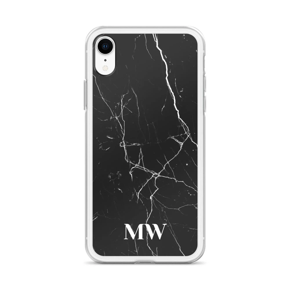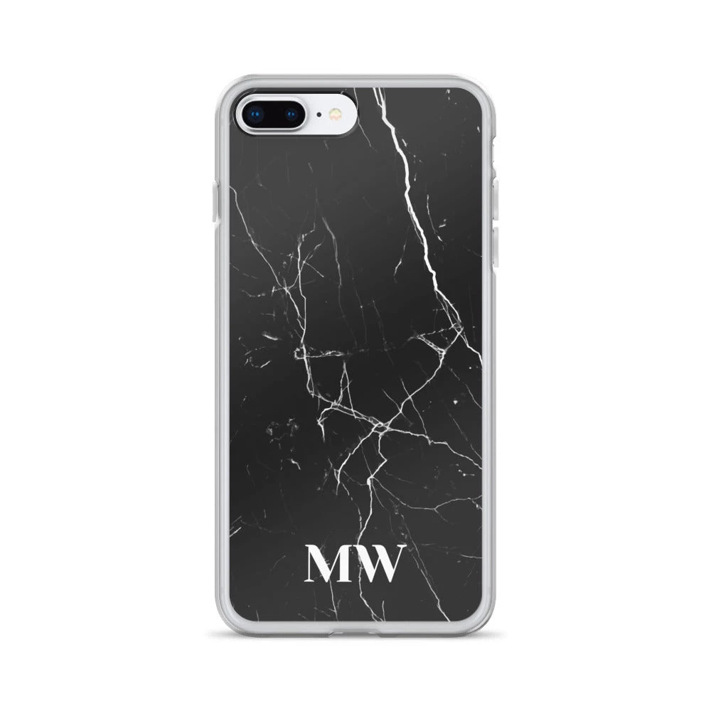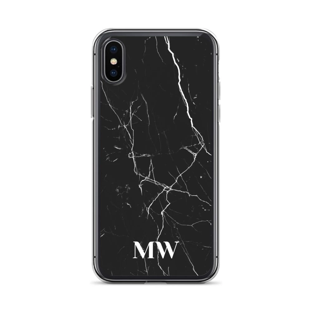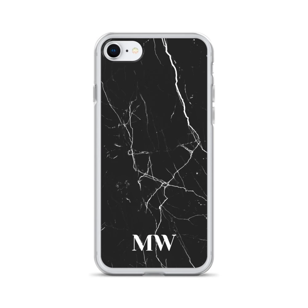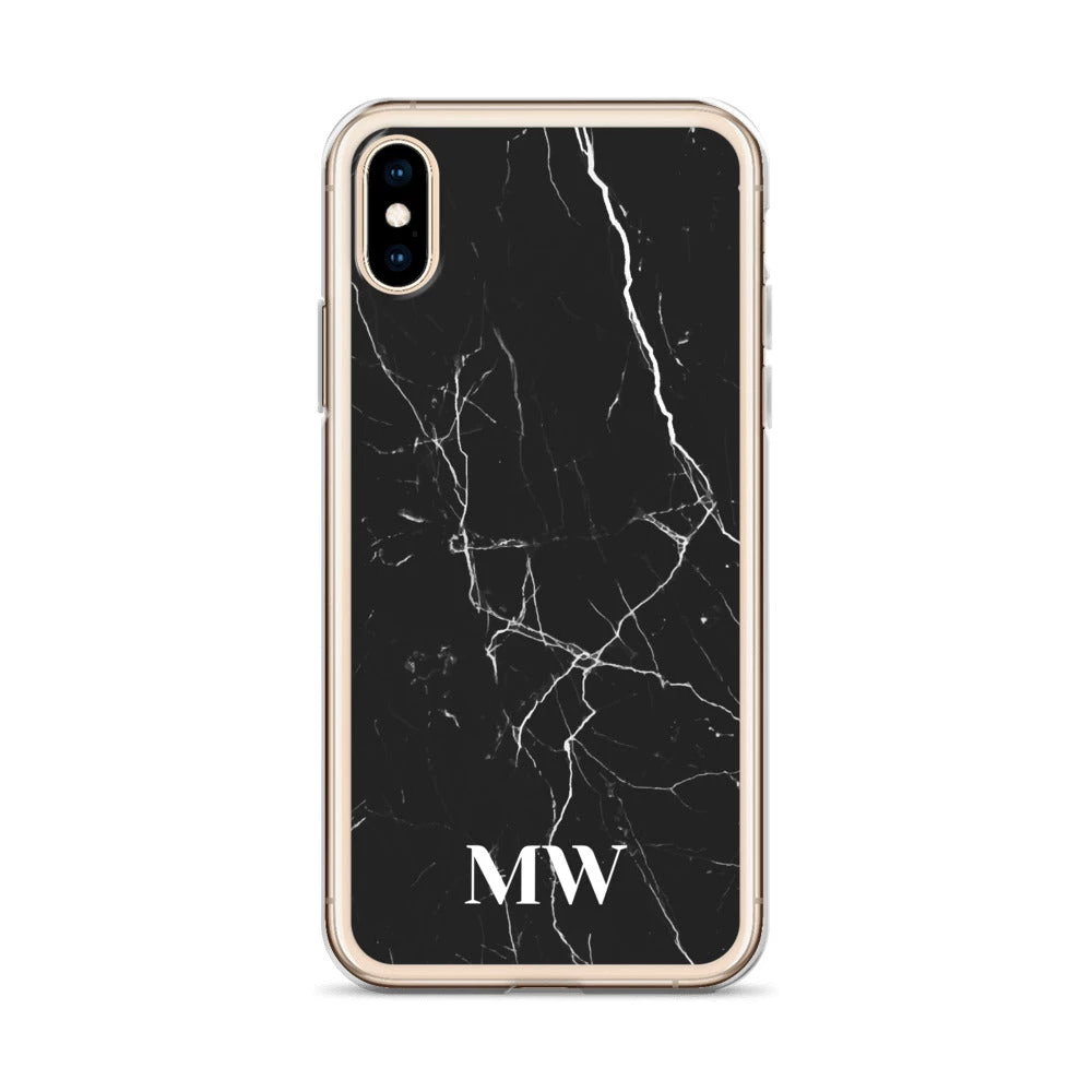 Personalize this sophisticated Black Marble iPhone case with your initials or name.