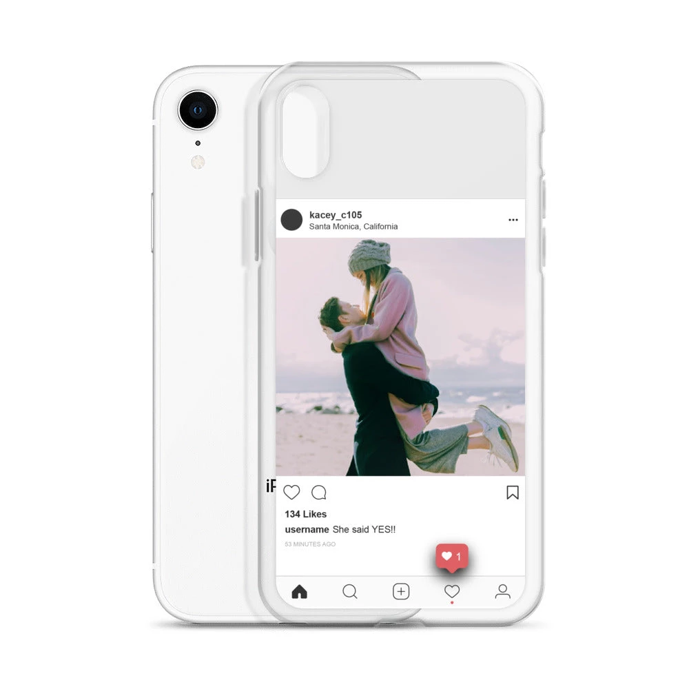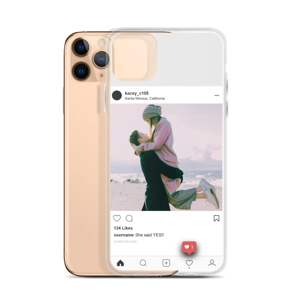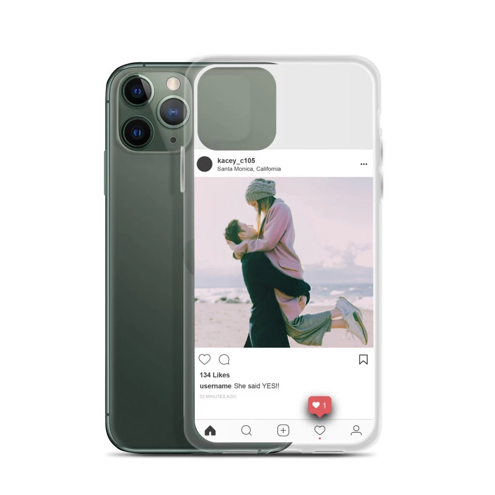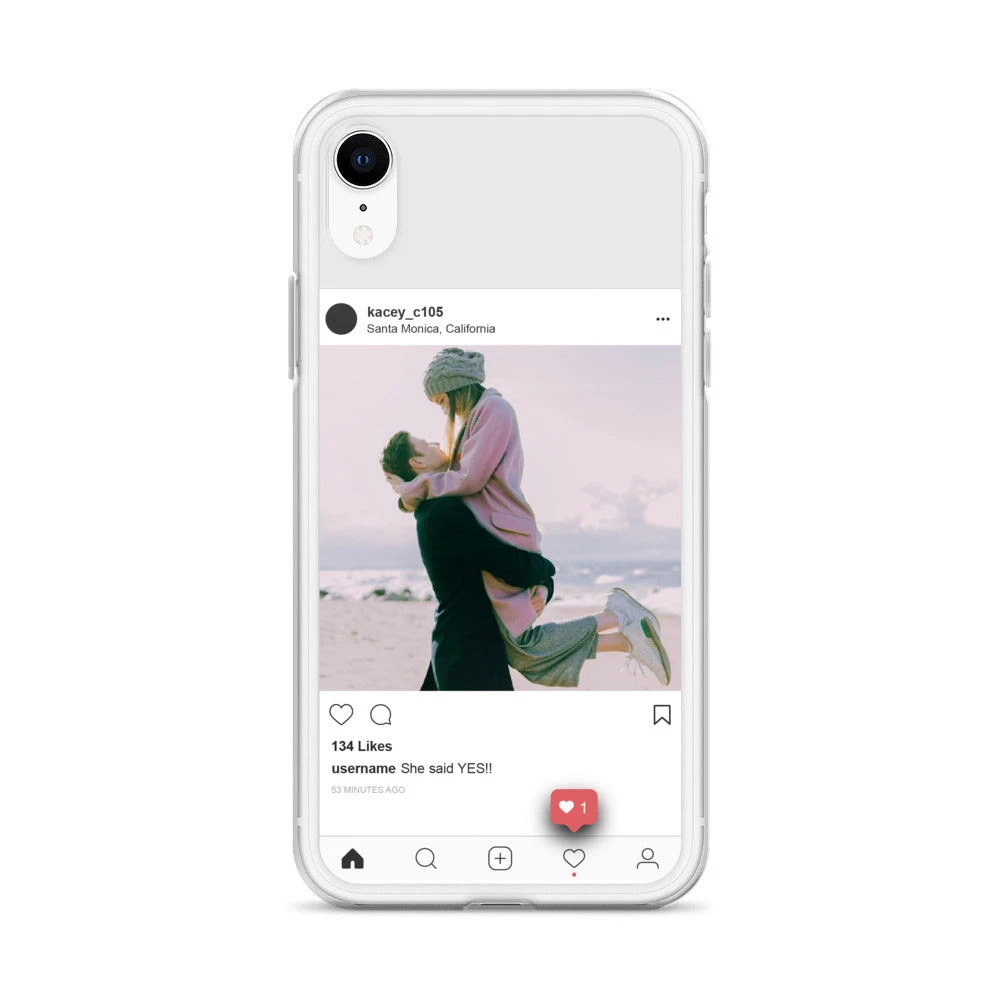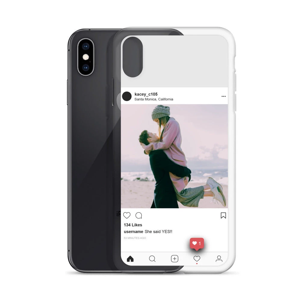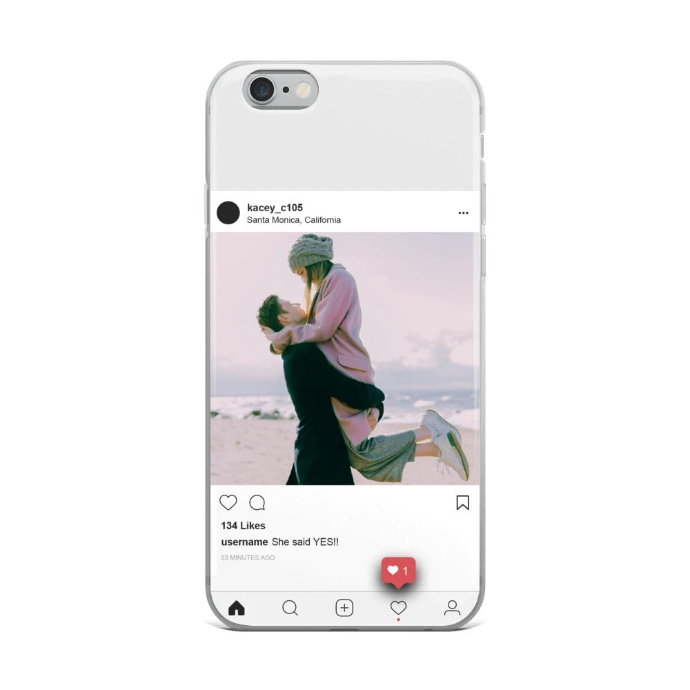Customize this unique Social Media iPhone Case with your own photo and details. You might have a memorable wedding day post, an engagement or baby announcement, birthday celebration, or pic with friends you want to replicate. Be creative! Upload a photo, and let us know the wording and details and we’ll weave our magic to create the design! Custom made especially for you. Great gift for a friend or loved one.