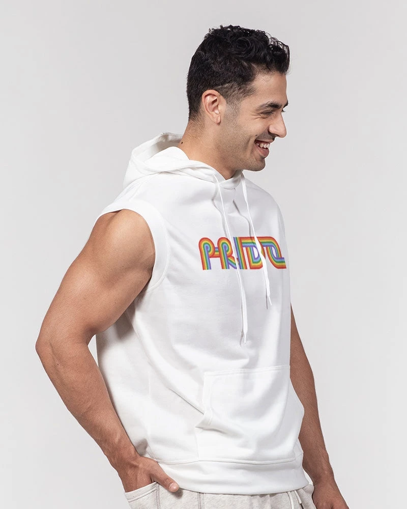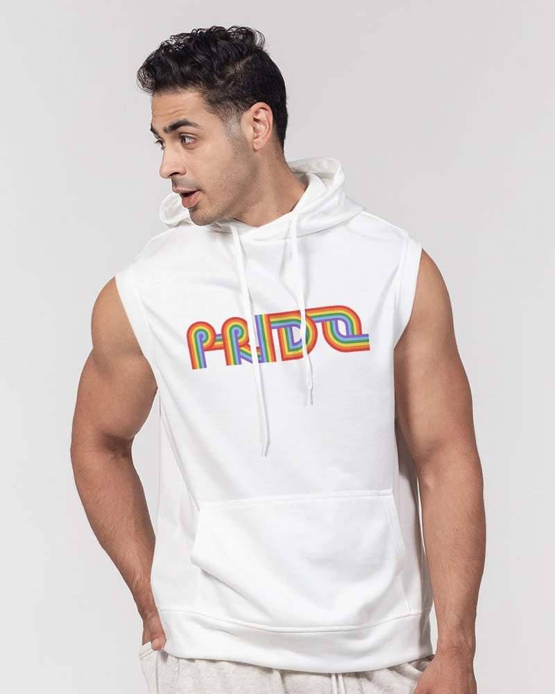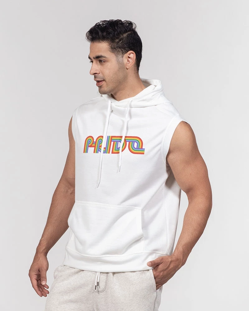 | Our Pride Premium Heavyweight Sleeveless Hoodie is built for comfort. Perfect for lounging at home or showing your arms at gym. Finished with an adjustable drawstring hood, front hand pocket, and sleeveless styling for optimal movement.