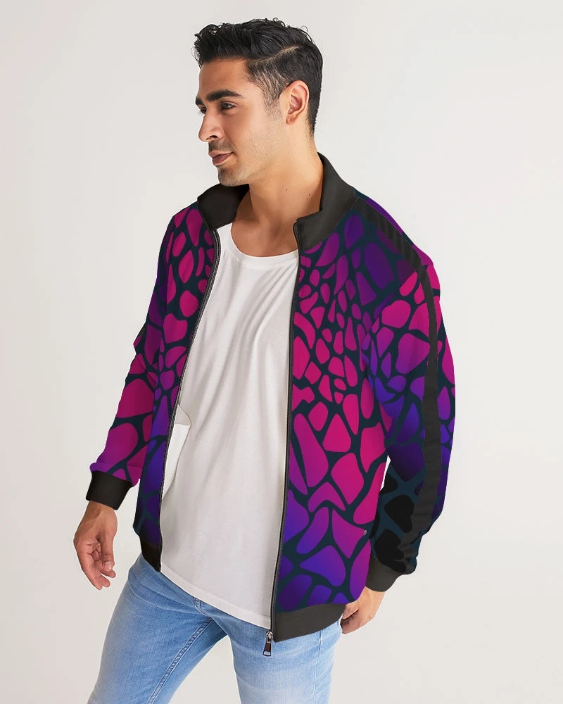 | Our Raspberry Giraffe Stripe-Sleeve Track Jacket is totally unique. This printed jacket features a stunning giraffe print in red, purple and navy tones. Its ribbed collar, cuffs and hem are the details to make this your daily go-to or top layer whether you’re hitting the gym, or the mall.