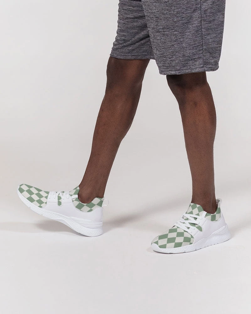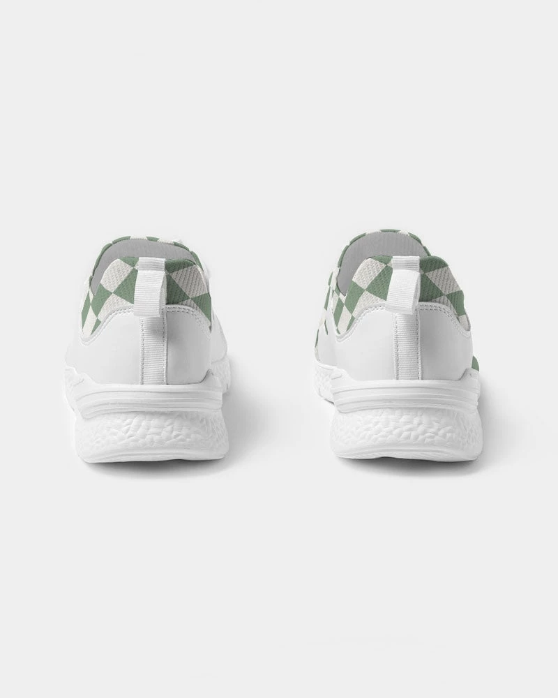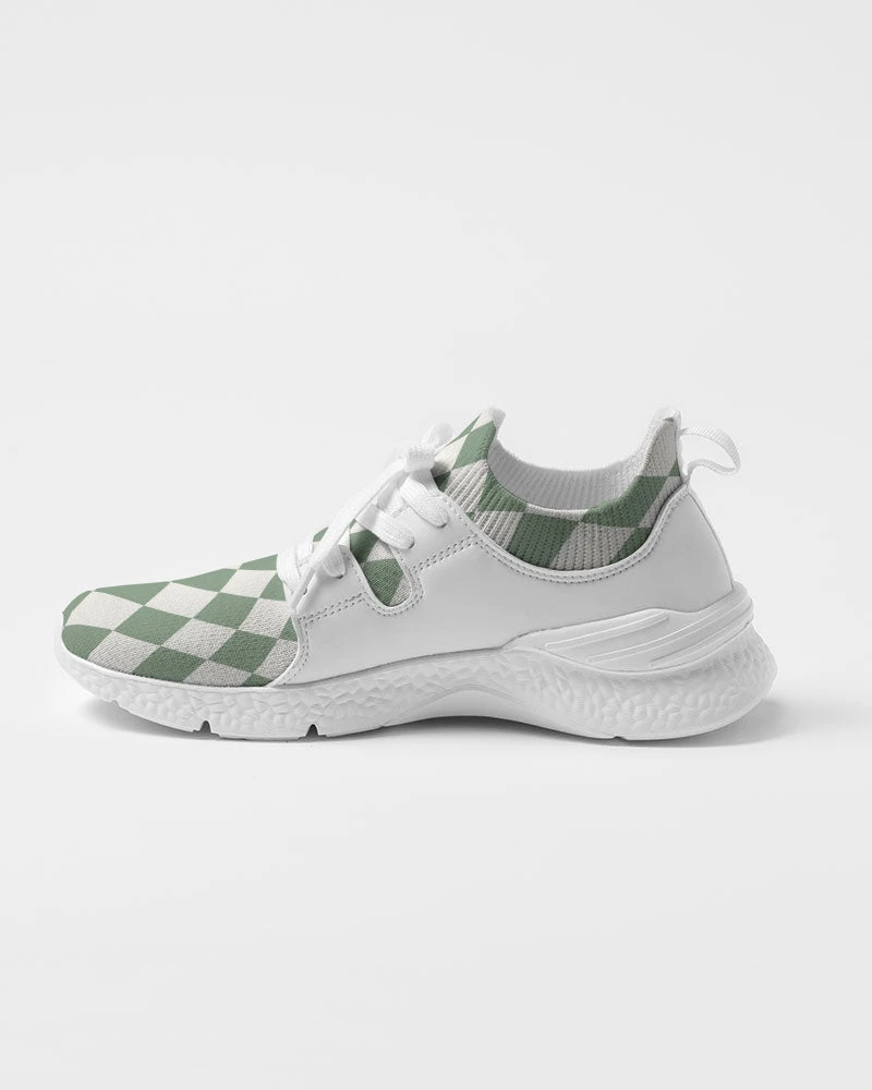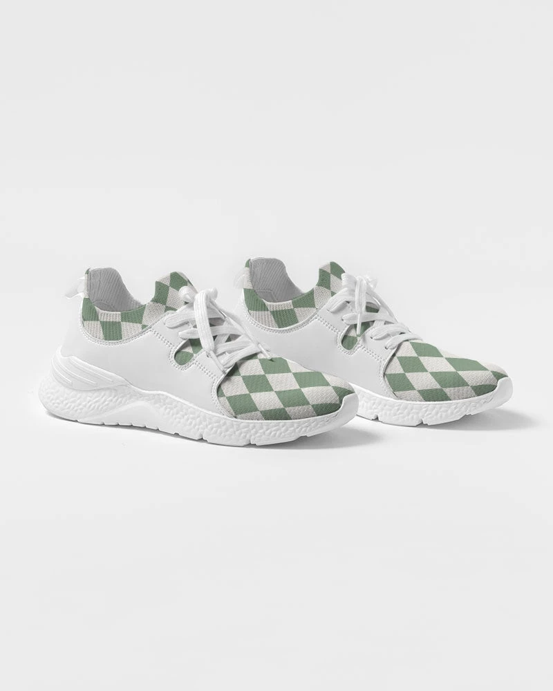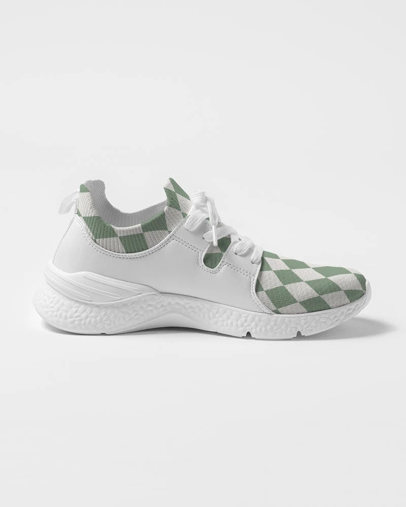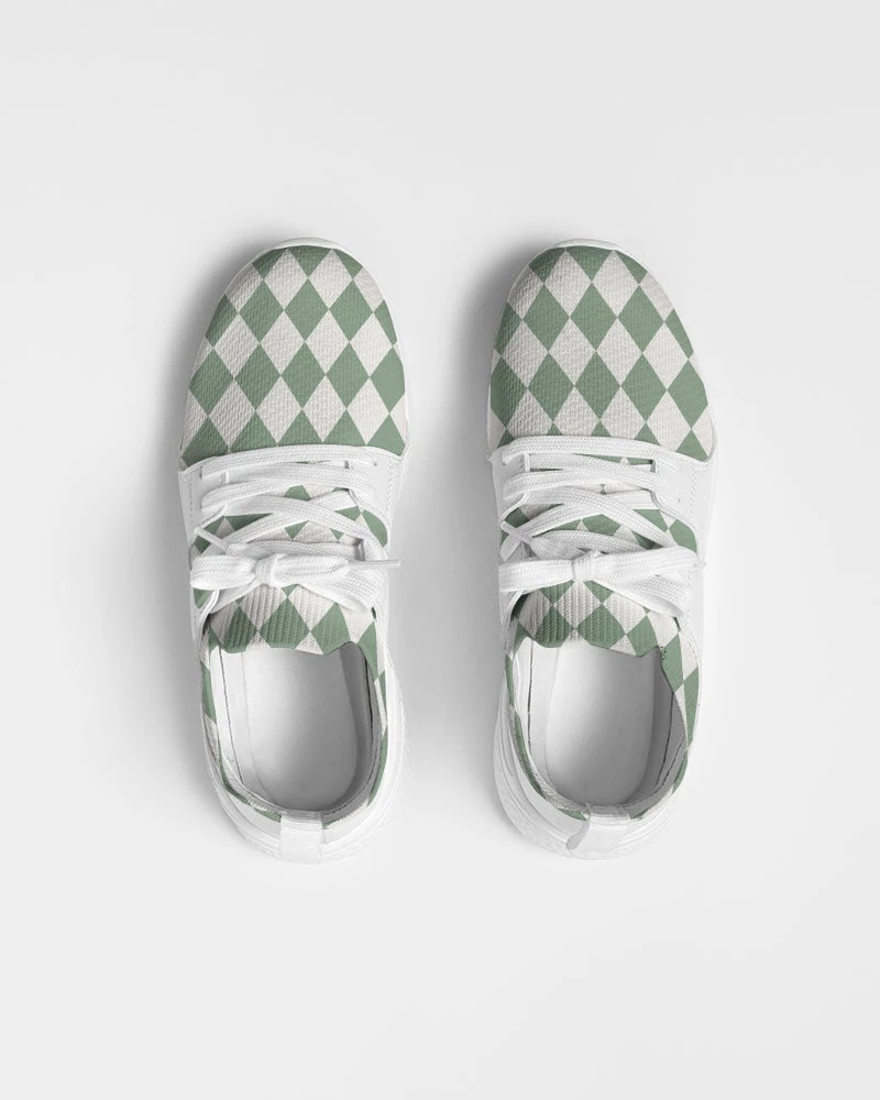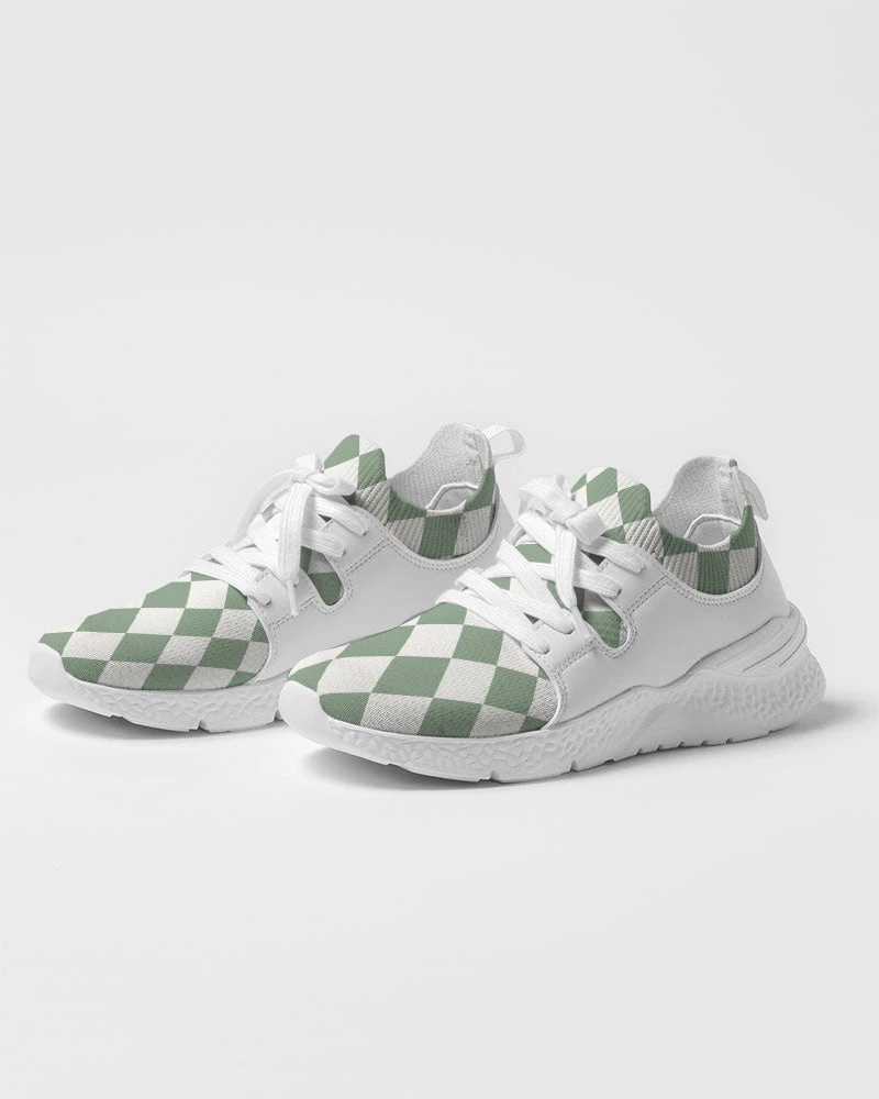 | Our Sage Diamond Check Flyknit sneakers are something you won’t find every day. They feature a textured breathable upper mesh, and dual side faux leather detailing. The super cool sage green diamond pattern is unique and different. Made with a soft, smooth and resilient foam that is lightweight. These diamond check sneakers are a great addition to your shoe collection. For the equivalent Women’s sizing, please refer to the size chart below.