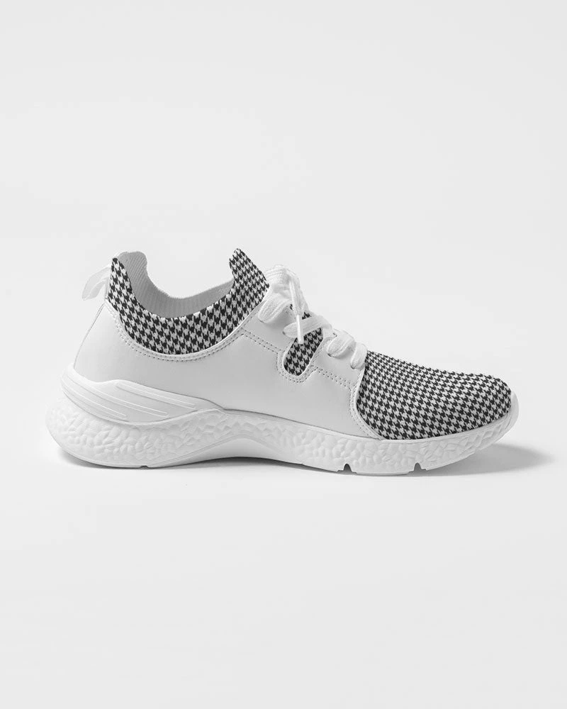 | With a textured upper mesh and dual side faux leather detail, our Houndstooth Fly Knit Sneaker is a stunner. Made with a soft, smooth and resilient foam that is lightweight and flexible. A classic pattern, on a contemporary shoe. A unique head turner.