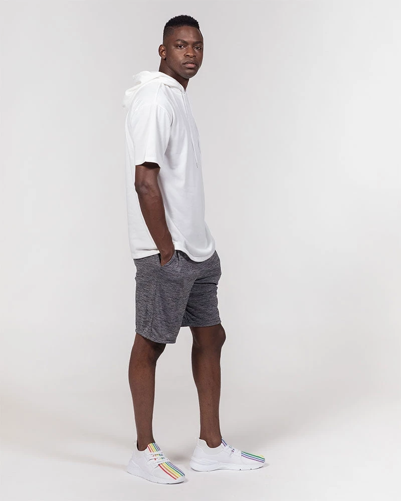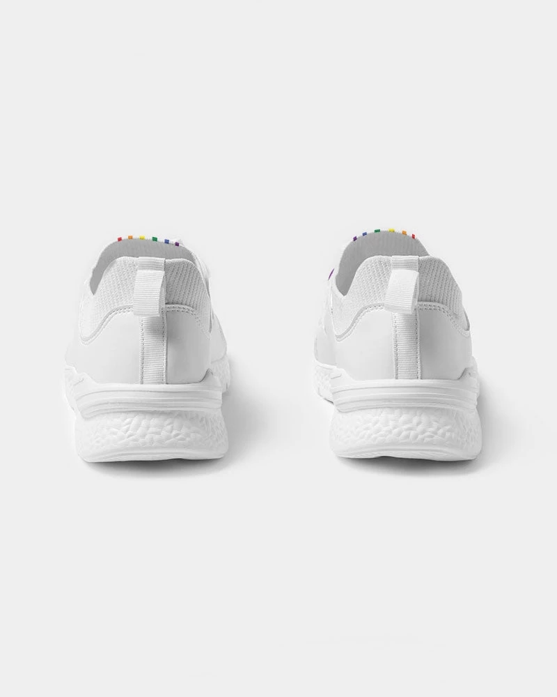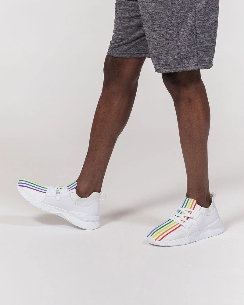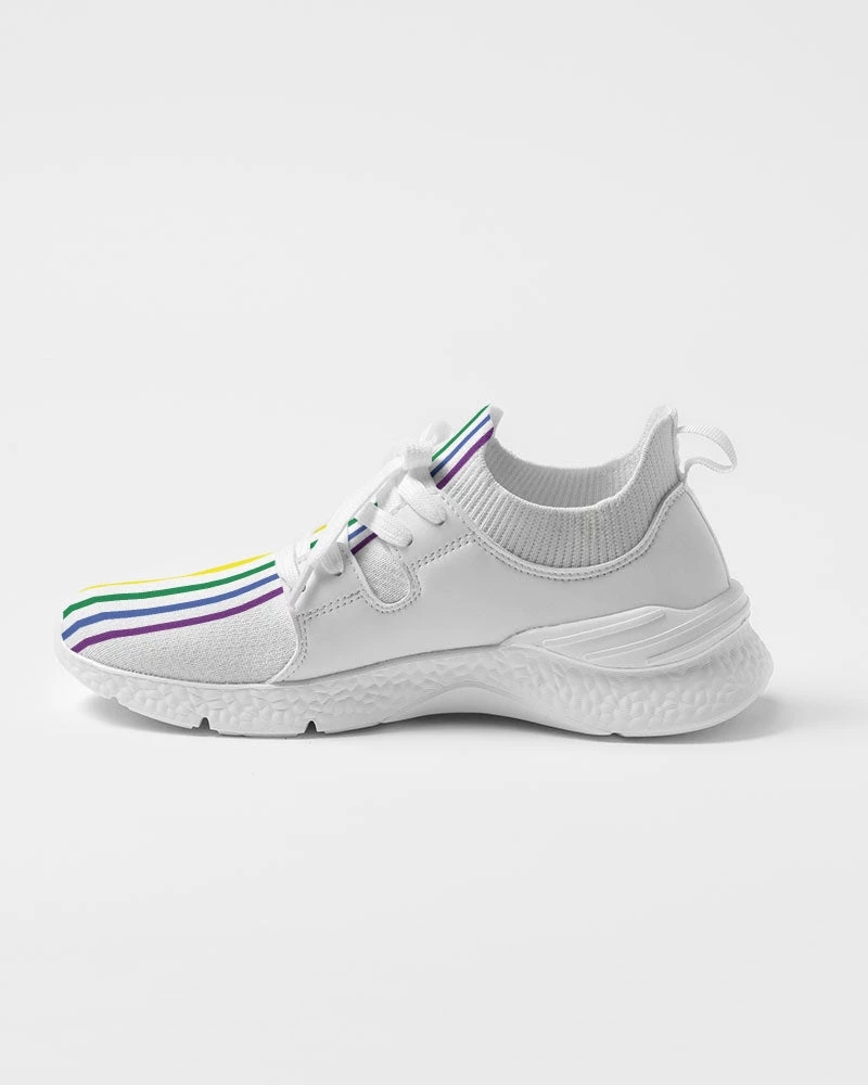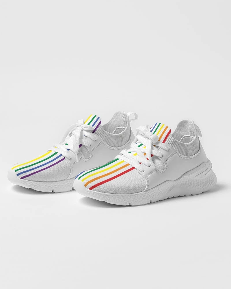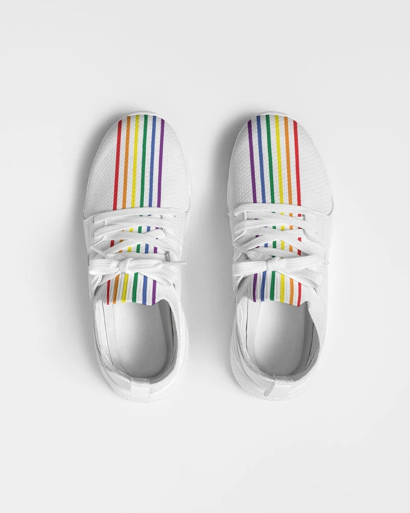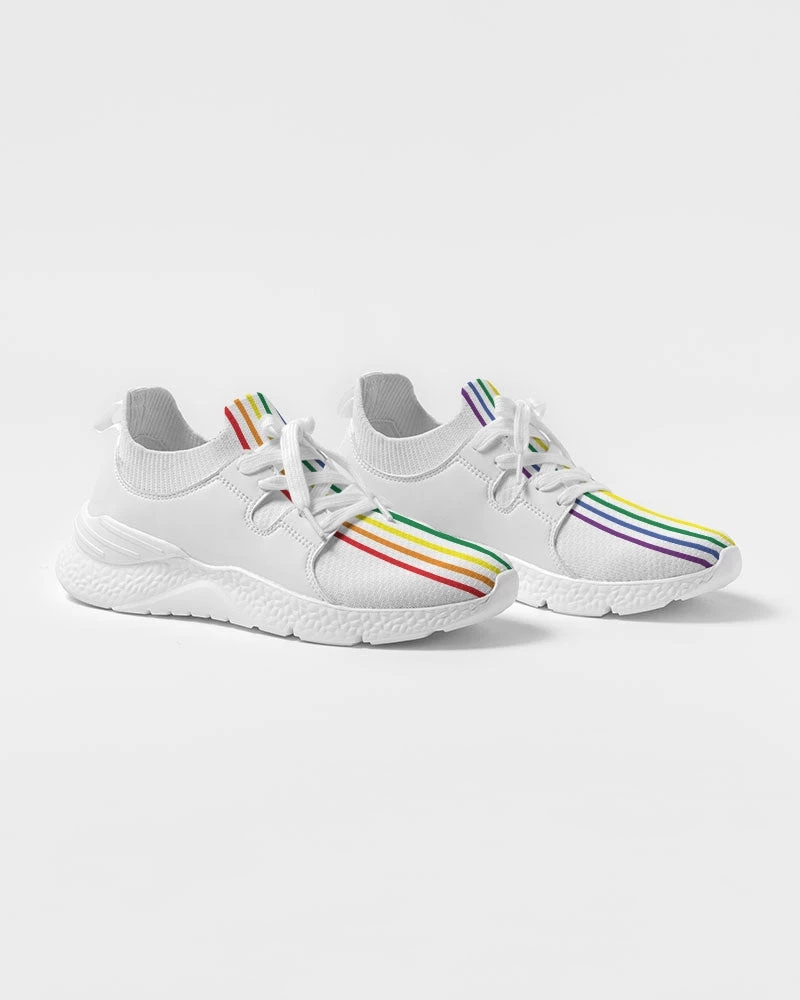 | Our rainbow pride stripe sneakers are minimalist and simple. With a textured upper mesh and dual side vegan leather detail, they are made with a soft, smooth and resilient foam that is lightweight and comfortable. Wear them every day or reveal for special occasions.