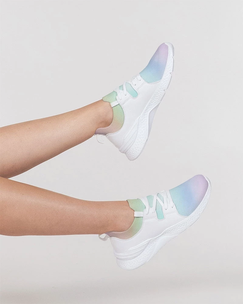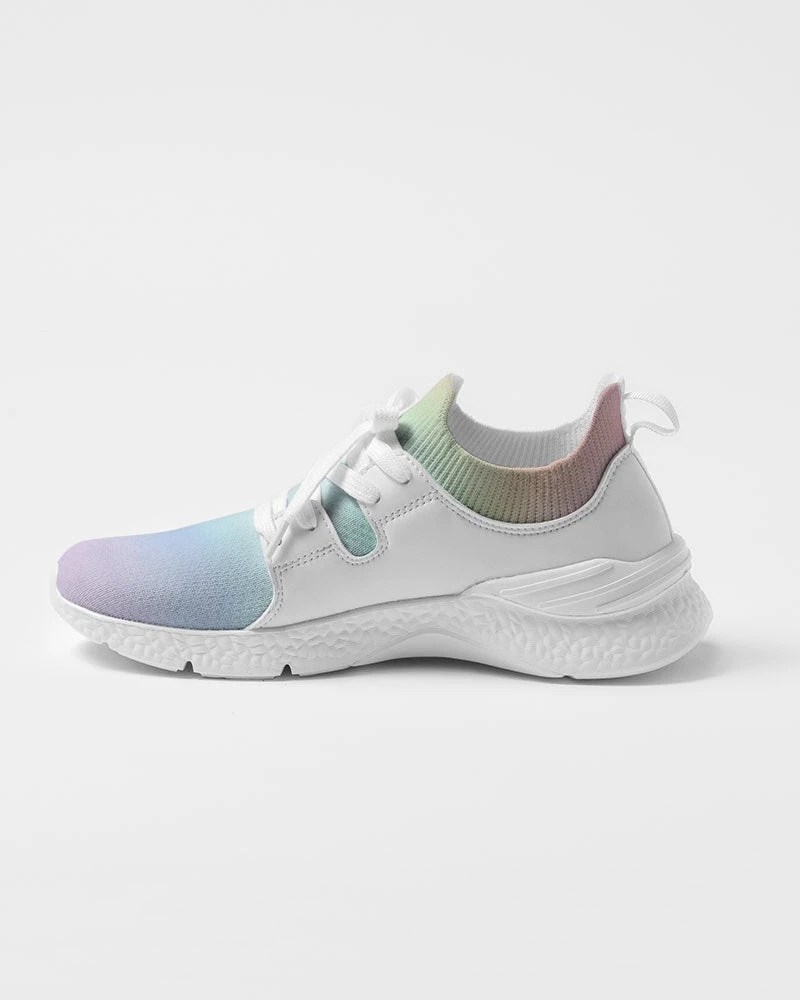 | With a textured upper mesh and dual side vegan leather detail, our Soft Rainbow Flyknit Sneaker adds a splash of color to your day. They feature a soft insole, breathable fkyknit fabric and resilient lightweight foam for all day comfort.