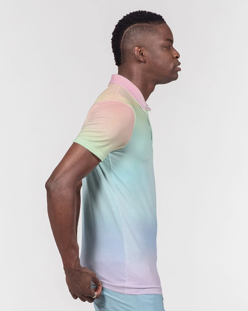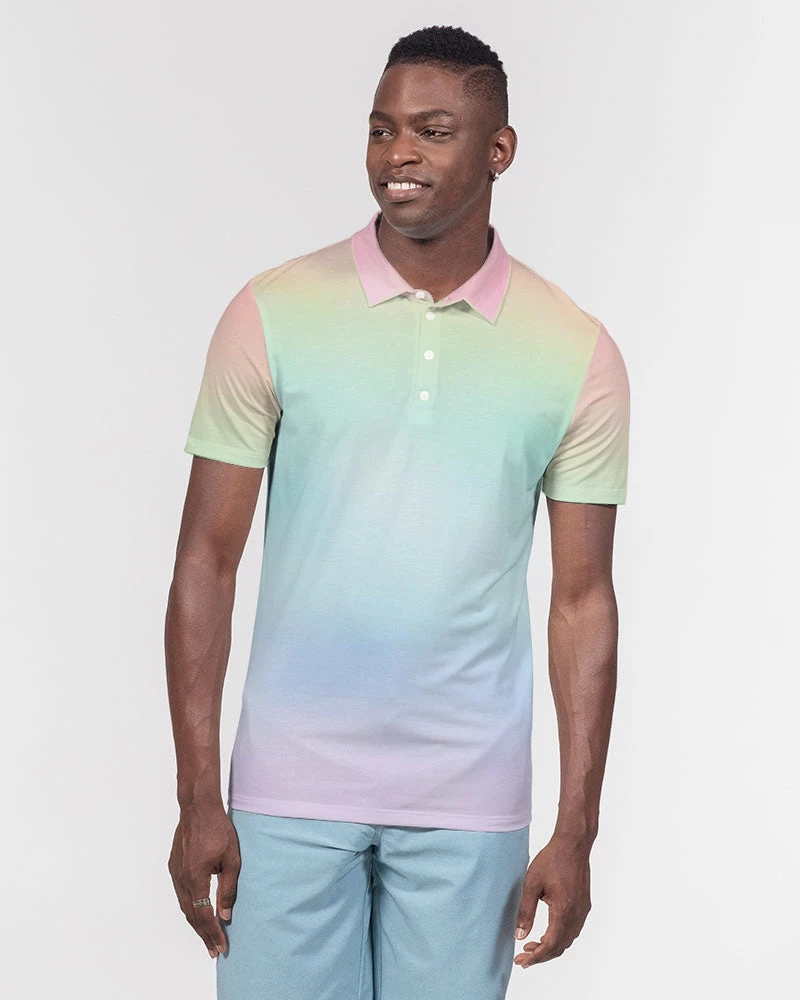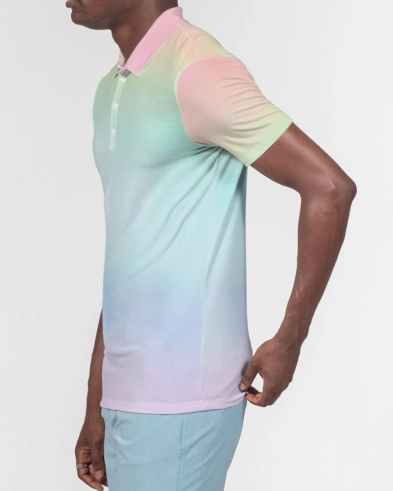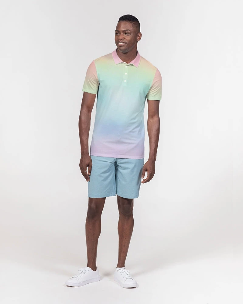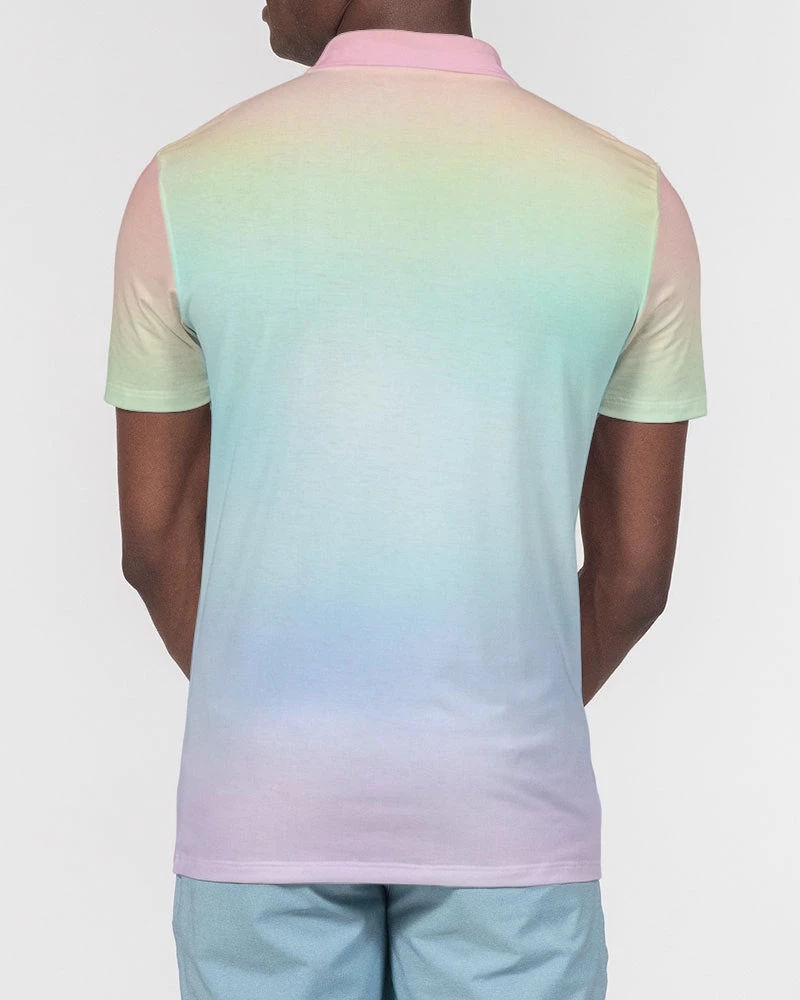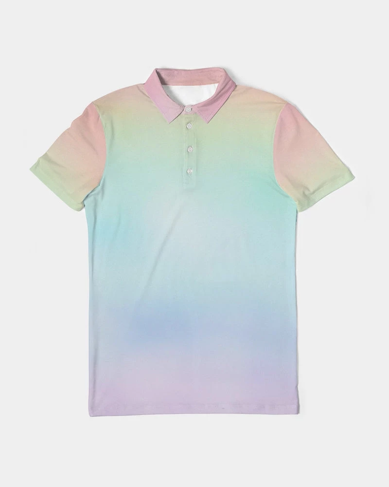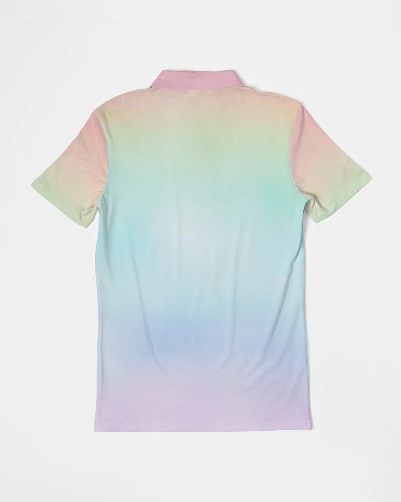 | Our Soft Rainbow Polo offers full versatility. Wear as business casual, out to dinner or at the beach. This Slim Fit Short Sleeve Polo features a soft, breathable fabric and close cut torso, tailored to show your natural physique. It features an all over subtle rainbow print.