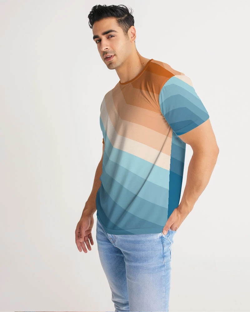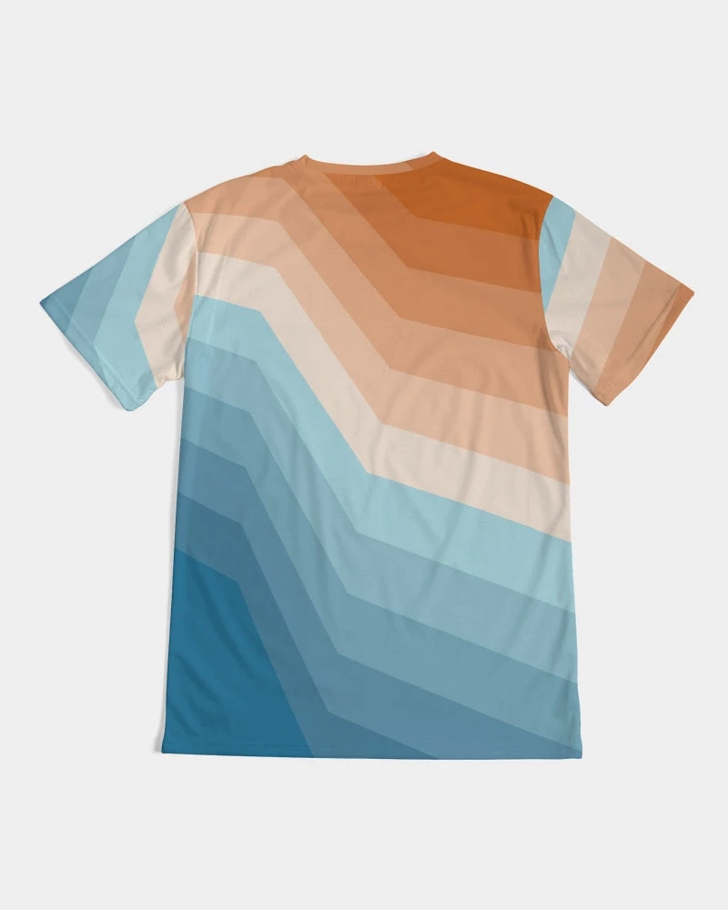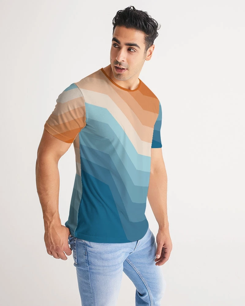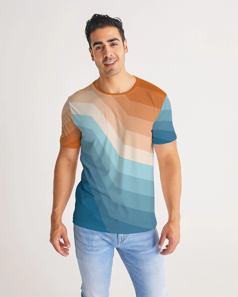 | Our Sunshine Blue Tee will be one of your faves. Featuring a super cool retro lined pattern in orange and blue tones, it pairs well with a range of outfits. Can be dressed up with pants and a jacket, or down with shorts – the choice is yours.