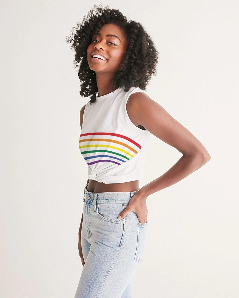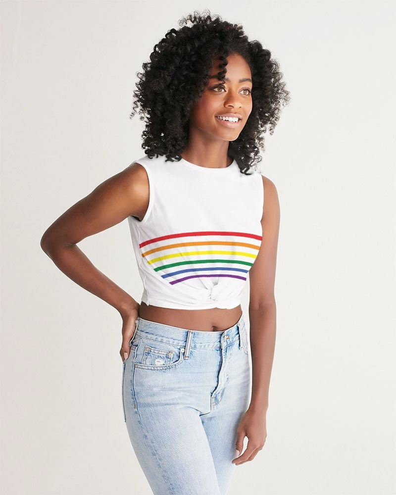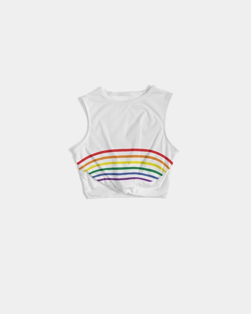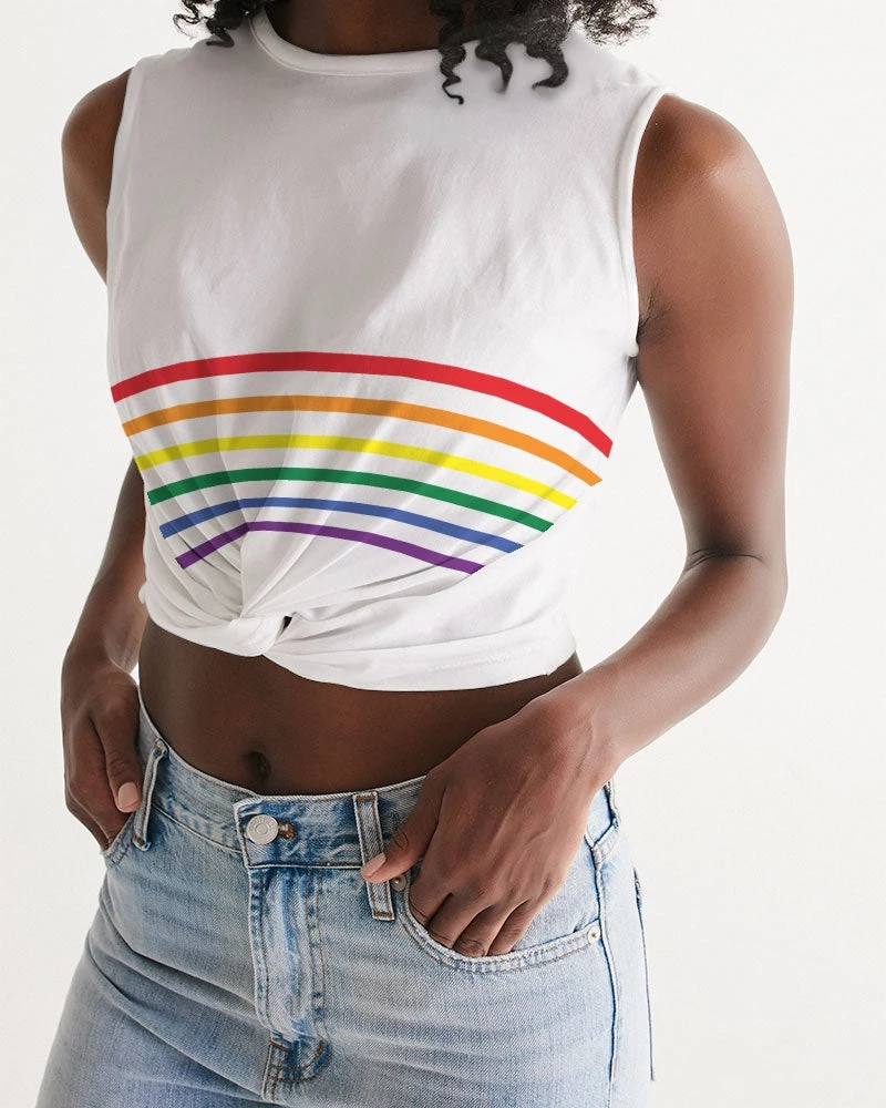 | Our Rainbow striped twist-front tank is minimalist and vibrant. Versatile enough to wear casual or for a special event. It is crafted from soft, breathable polyblend material for style and simplicity.