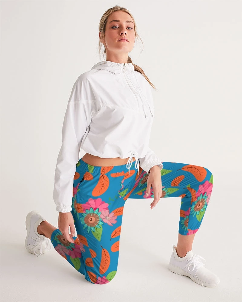 | Our Tropical Flower Power Womens Track Pants in Blue are worn with confidence. They feature a bold tropical floral print perfect for pairing with a minimalist top. Street worthy style with a relaxed fit they are lightweight and versatile. The water-resistant fabric keeps you dry and comfortable in any situation. Premium quality with full mesh lining.